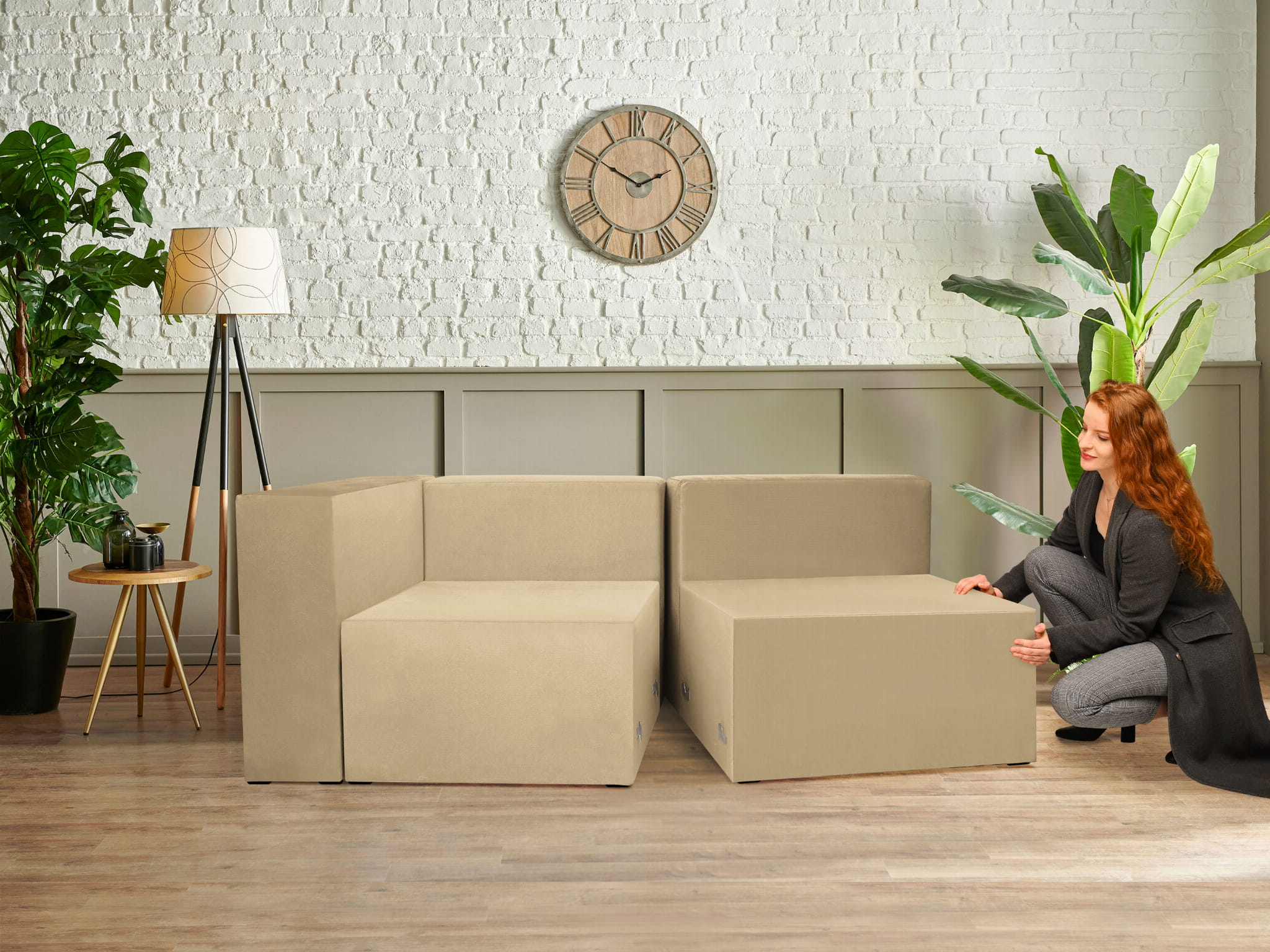 Miękkie tapicerowane siedzisko w kolorze beżowym LEON – element systemu modułowego do połączenia z pozostałymi modułami