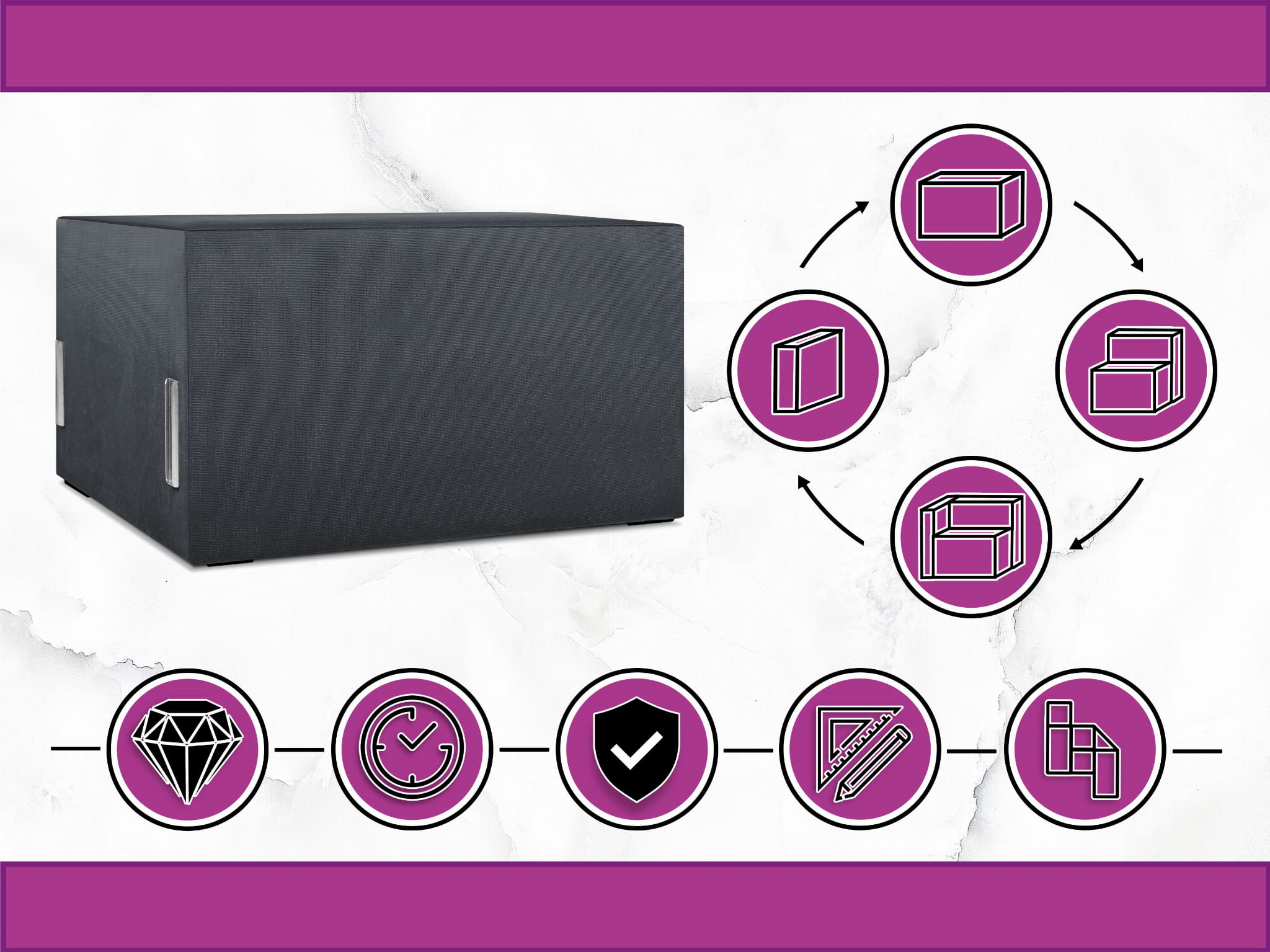 Moduł: tapicerowane siedzisko 80 LEON w kolorze ciemnoszarym z metalowymi łącznikami – segment do zestawu mebli modułowych