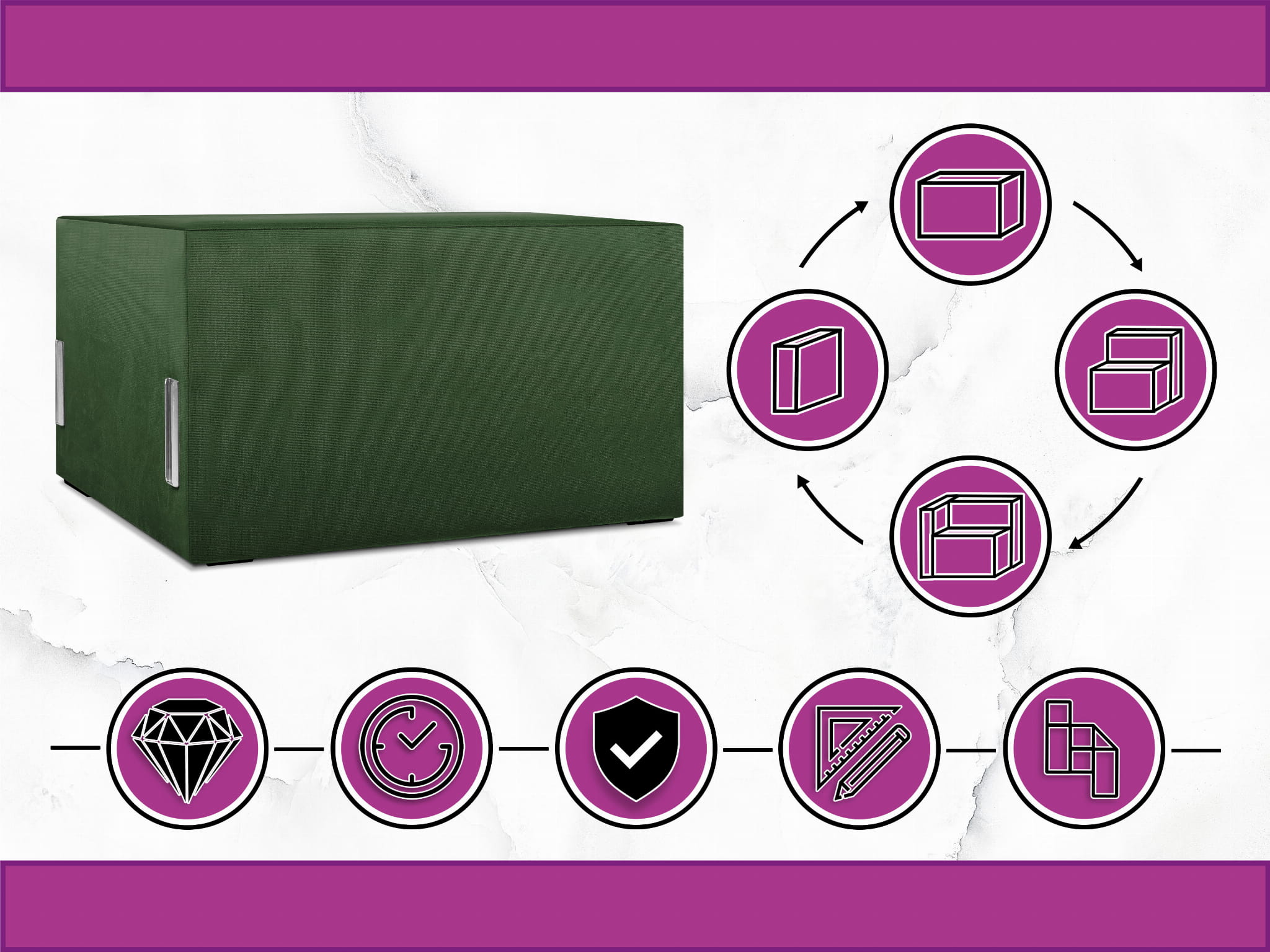 Moduł: tapicerowane siedzisko 80 LEON w kolorze ciemnozielonym z metalowymi łącznikami – segment do zestawu mebli modułowych