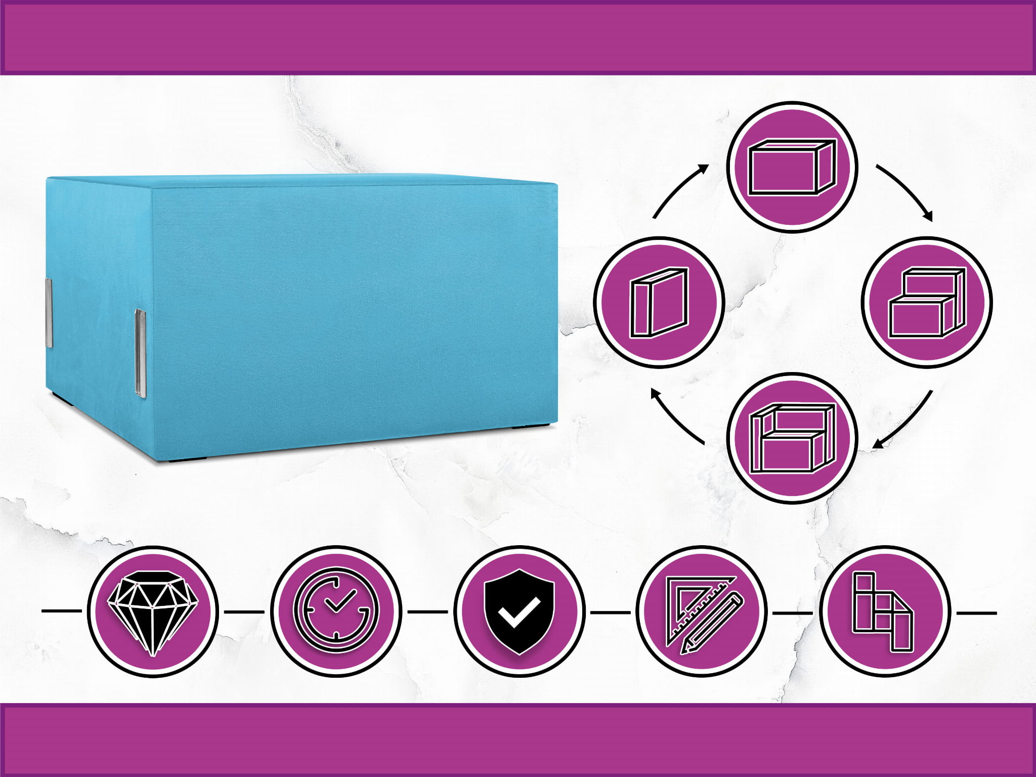 Moduł: tapicerowane siedzisko 80 LEON w kolorze jasnoniebieskim z metalowymi łącznikami – segment do zestawu mebli modułowych