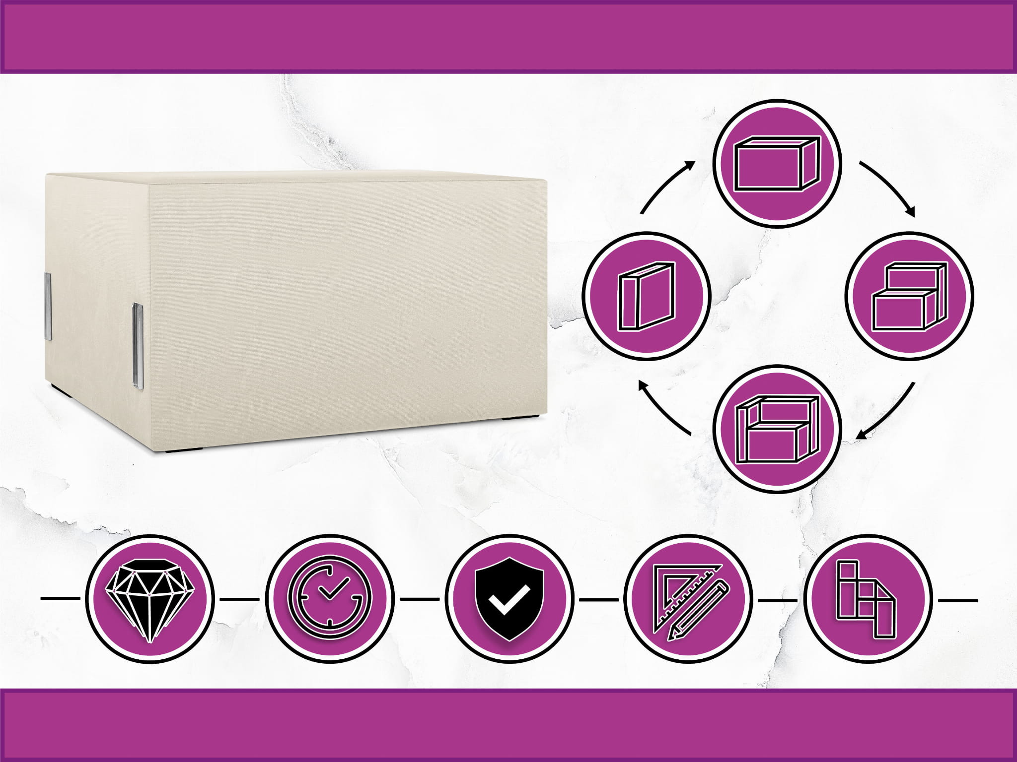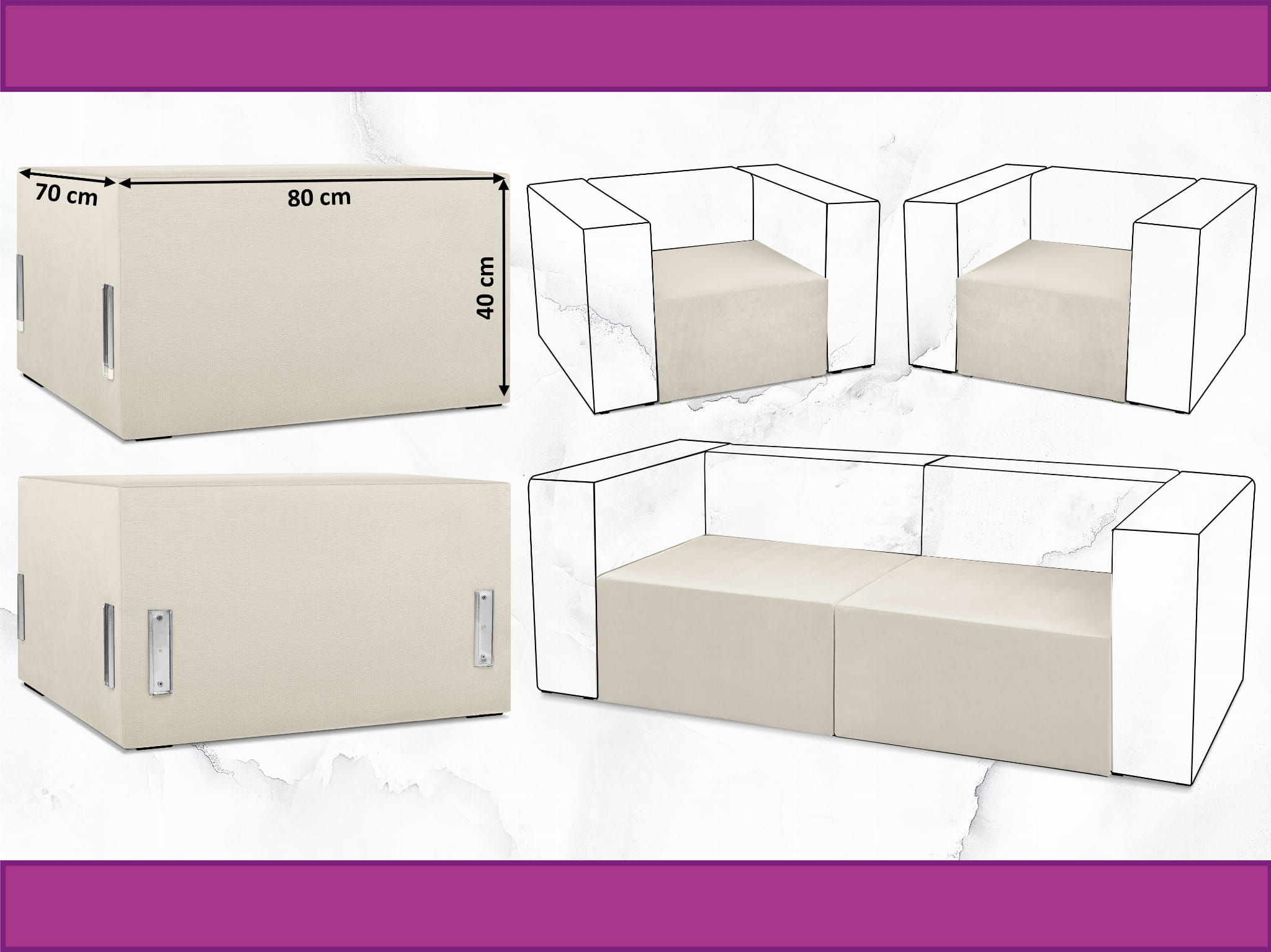 Moduł: tapicerowane siedzisko 80 LEON w kolorze kremowym z metalowymi łącznikami – segment do zestawu mebli modułowych