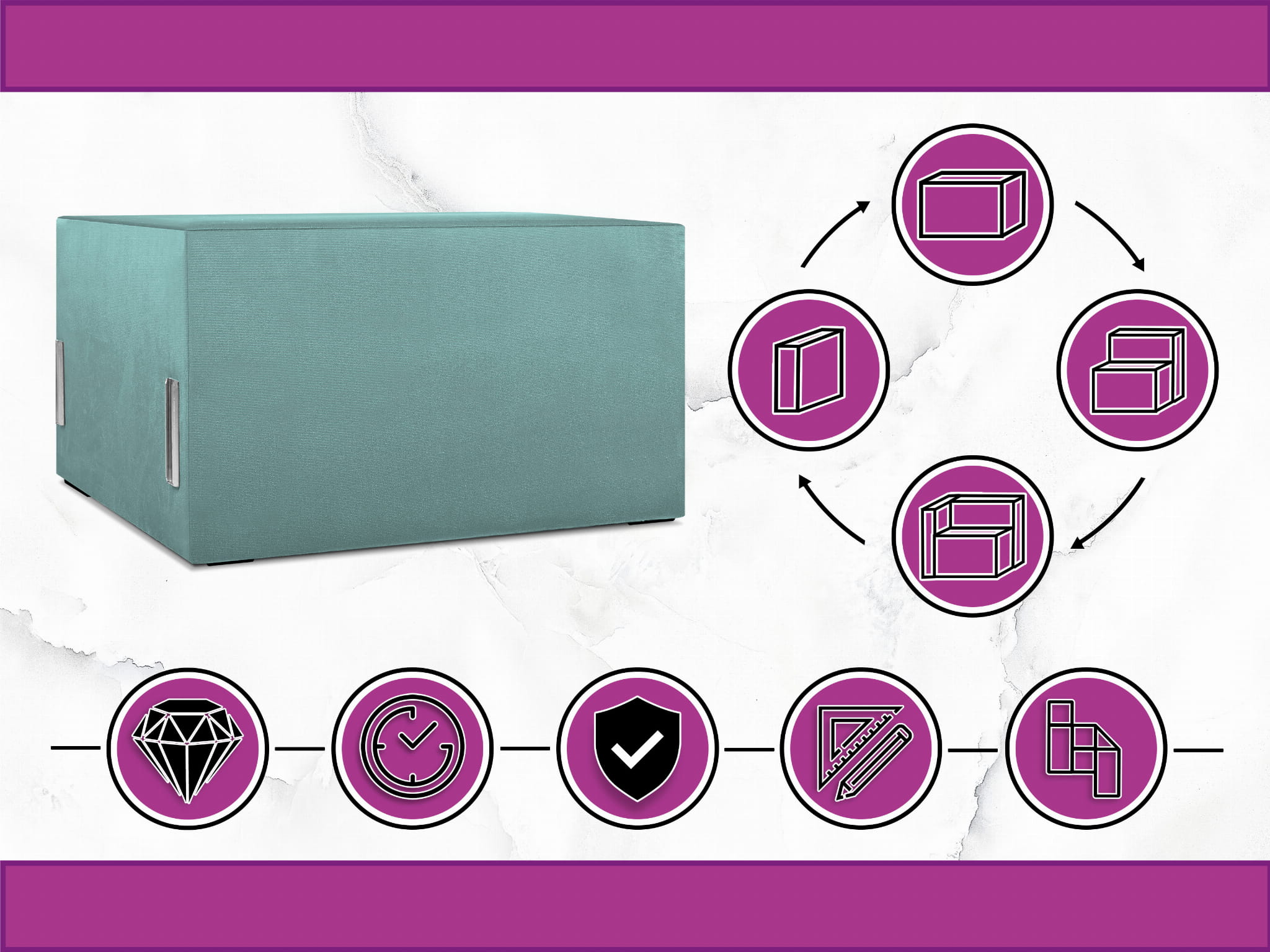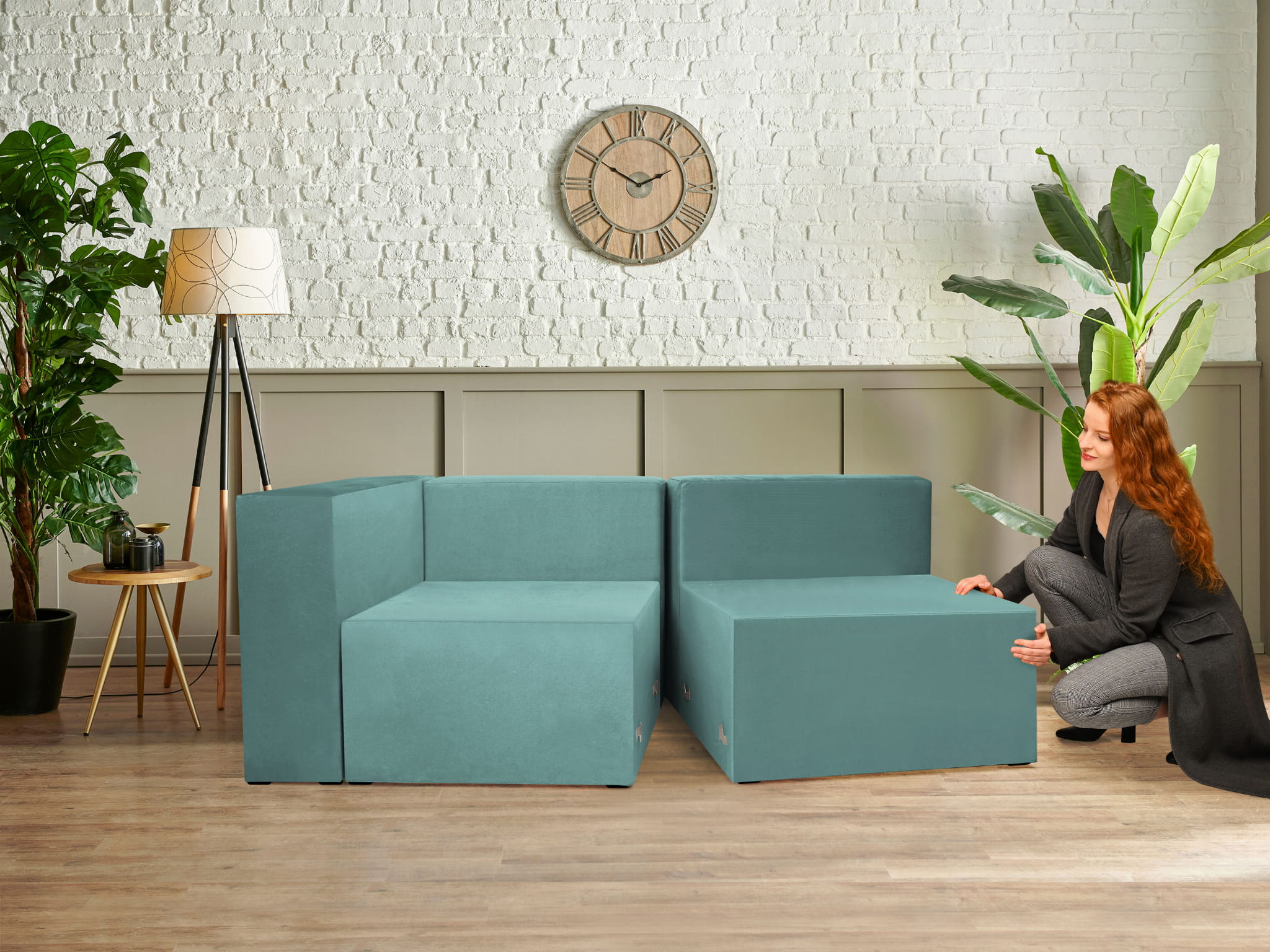 Miękkie tapicerowane siedzisko w kolorze morskim LEON – element systemu modułowego do połączenia z pozostałymi modułami