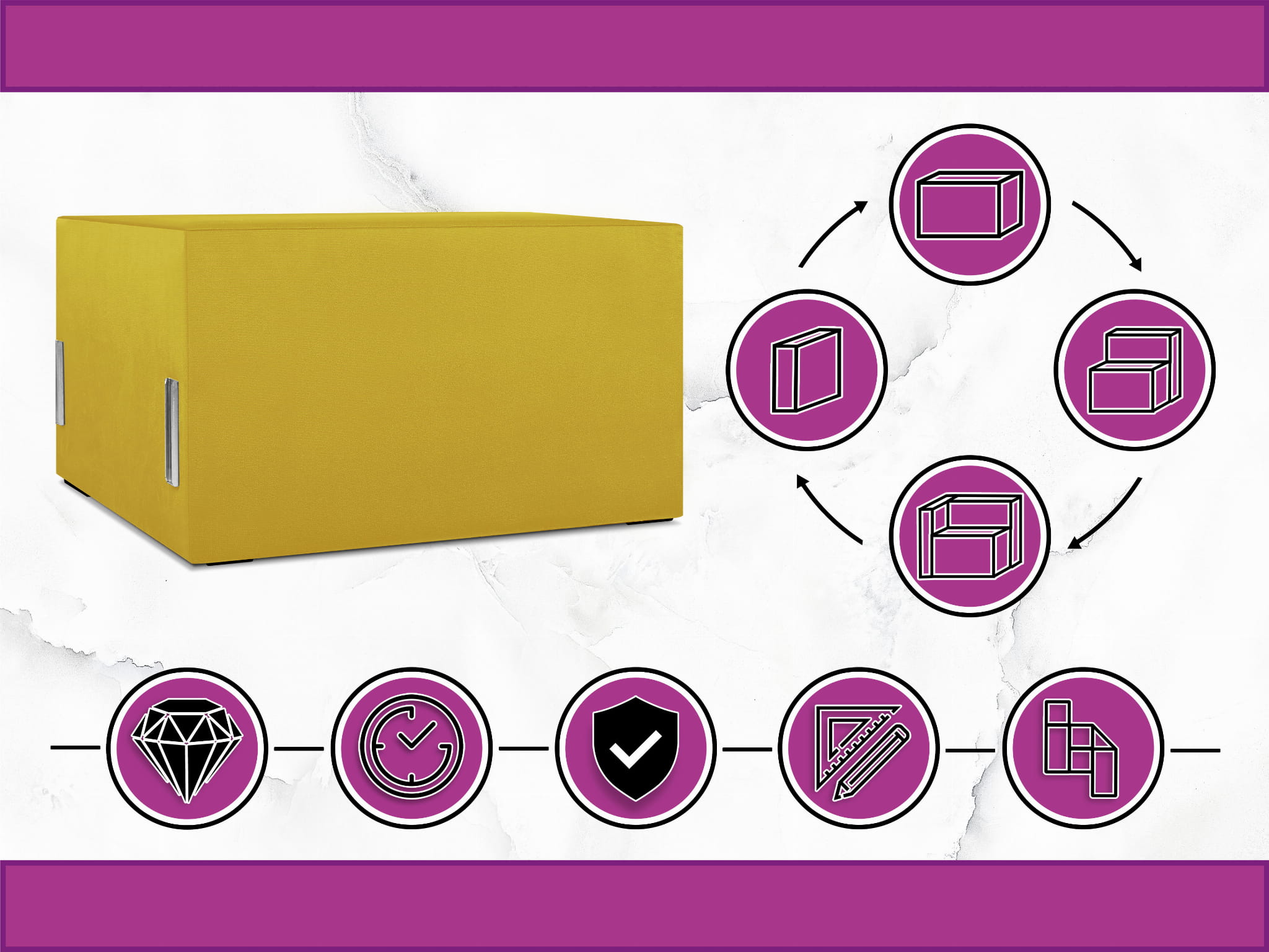 Moduł: tapicerowane siedzisko 80 LEON w kolorze żółtym z metalowymi łącznikami – segment do zestawu mebli modułowych