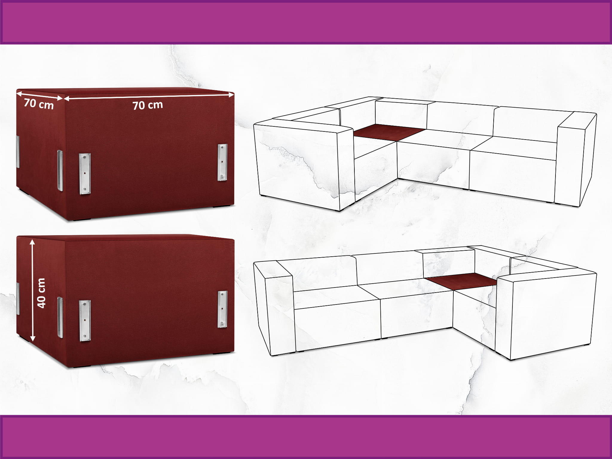 Moduł: tapicerowane siedzisko narożne LEON w kolorze bordowym z metalowymi łącznikami – segment do zestawu mebli modułowych