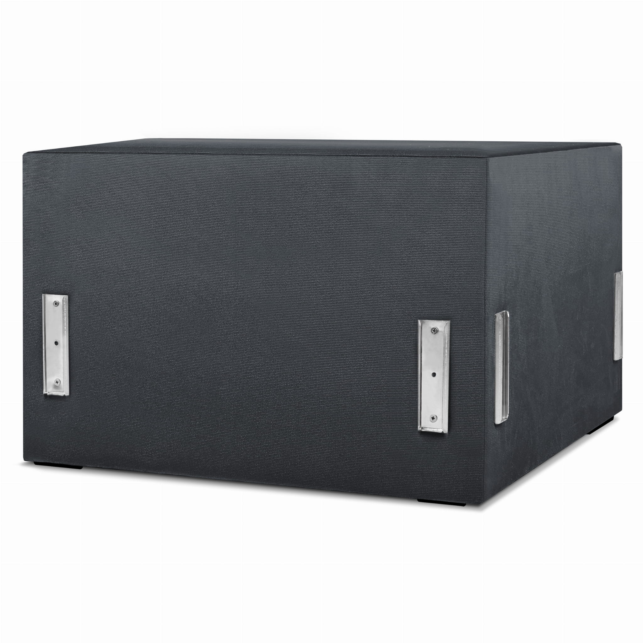 Moduł: tapicerowane siedzisko narożne LEON w kolorze ciemnoszarym z metalowymi łącznikami – segment do zestawu mebli modułowych