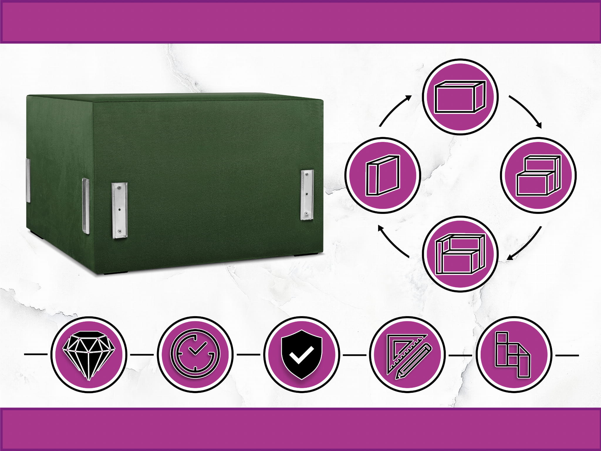 Moduł: tapicerowane siedzisko narożne LEON w kolorze ciemnozielonym z metalowymi łącznikami – segment do zestawu mebli modułowych