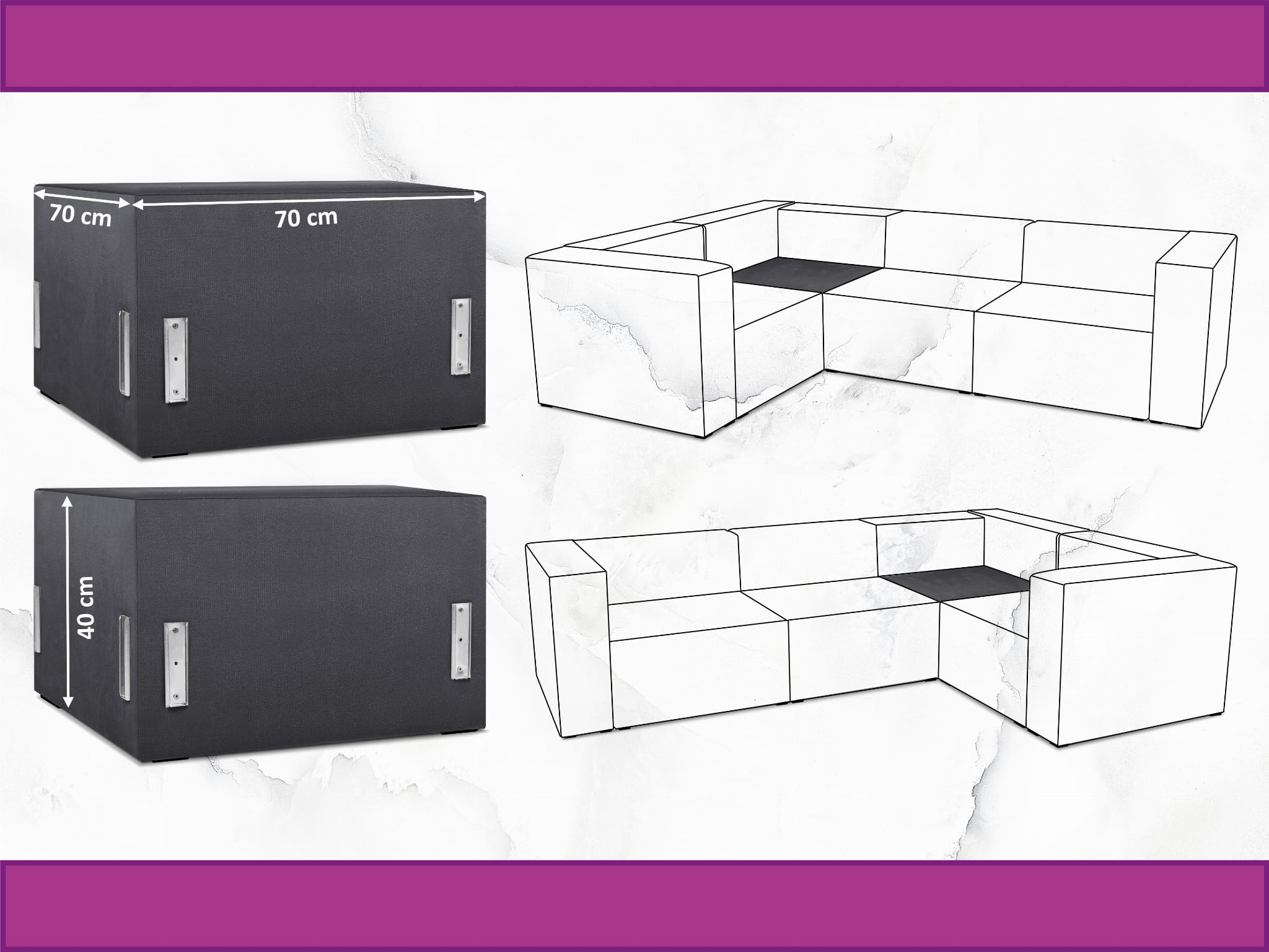 Moduł Siedzisko narożne połączysz ze wszystkimi pozostałymi segmentami systemu LEON za pomocą wytrzymałych, metalowych łączników.