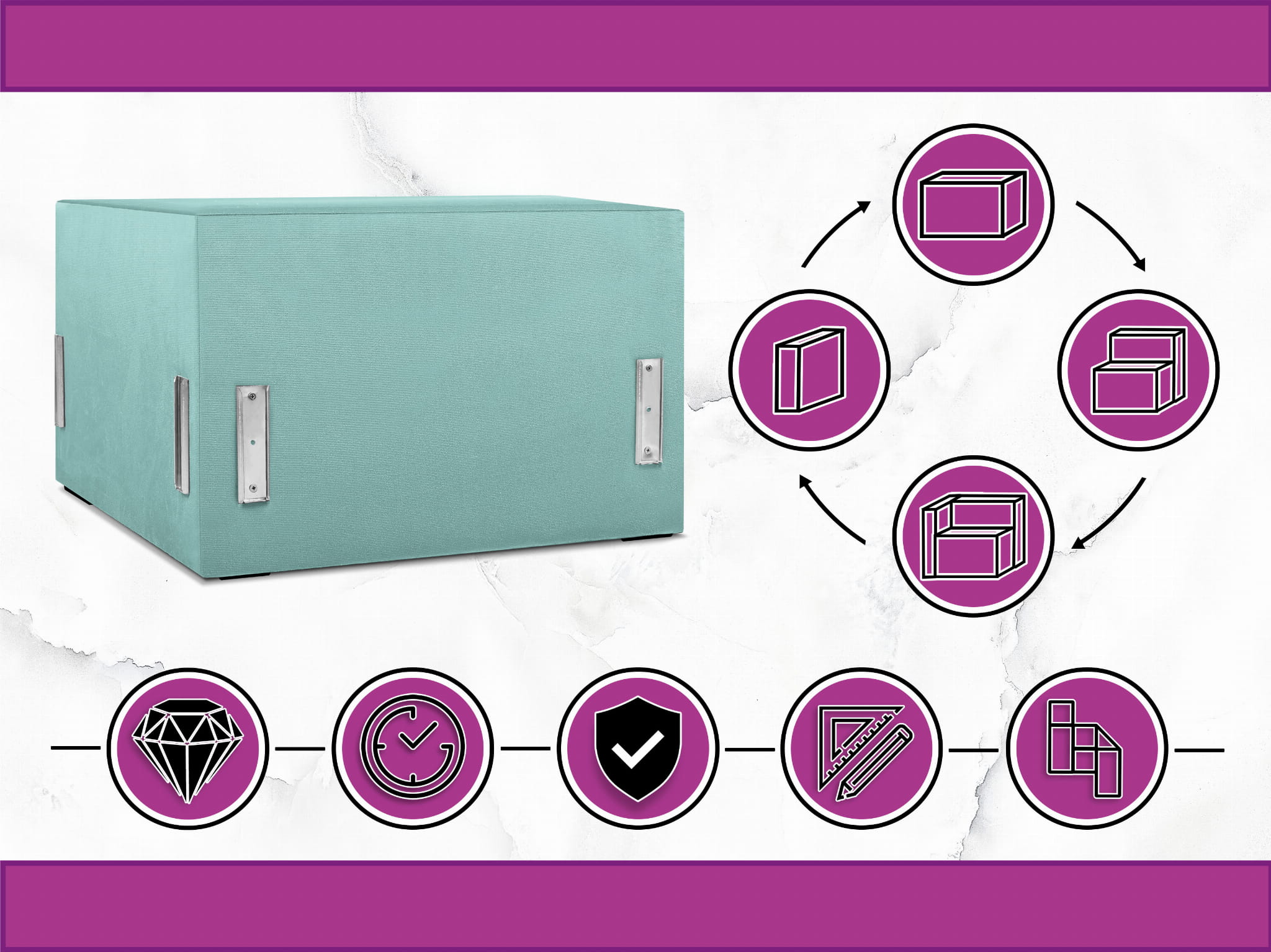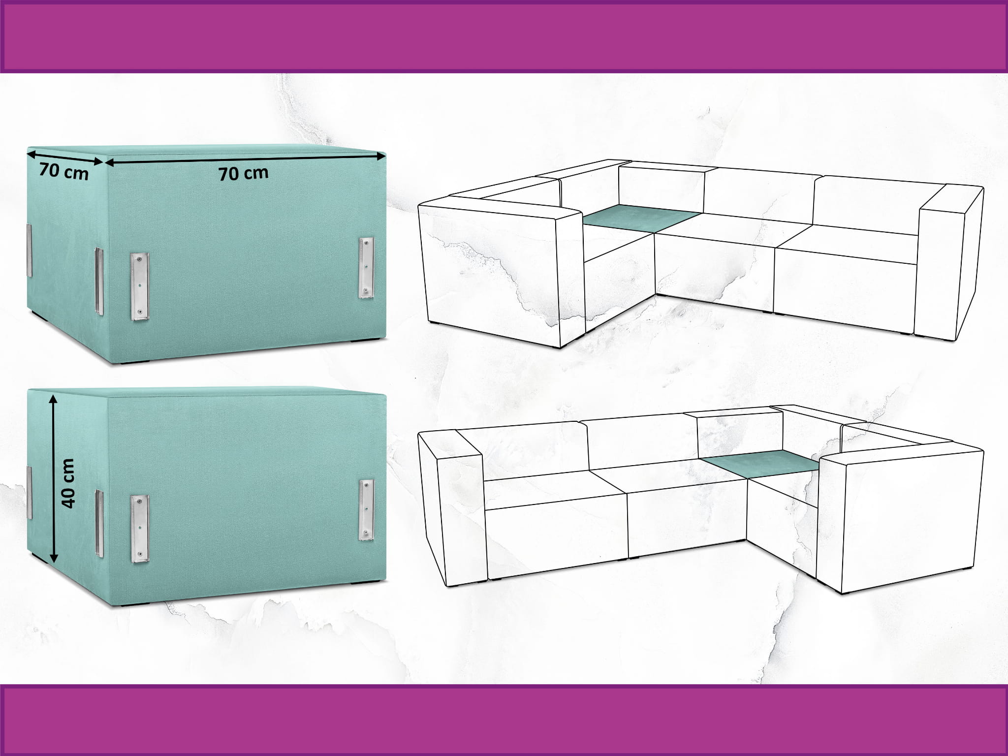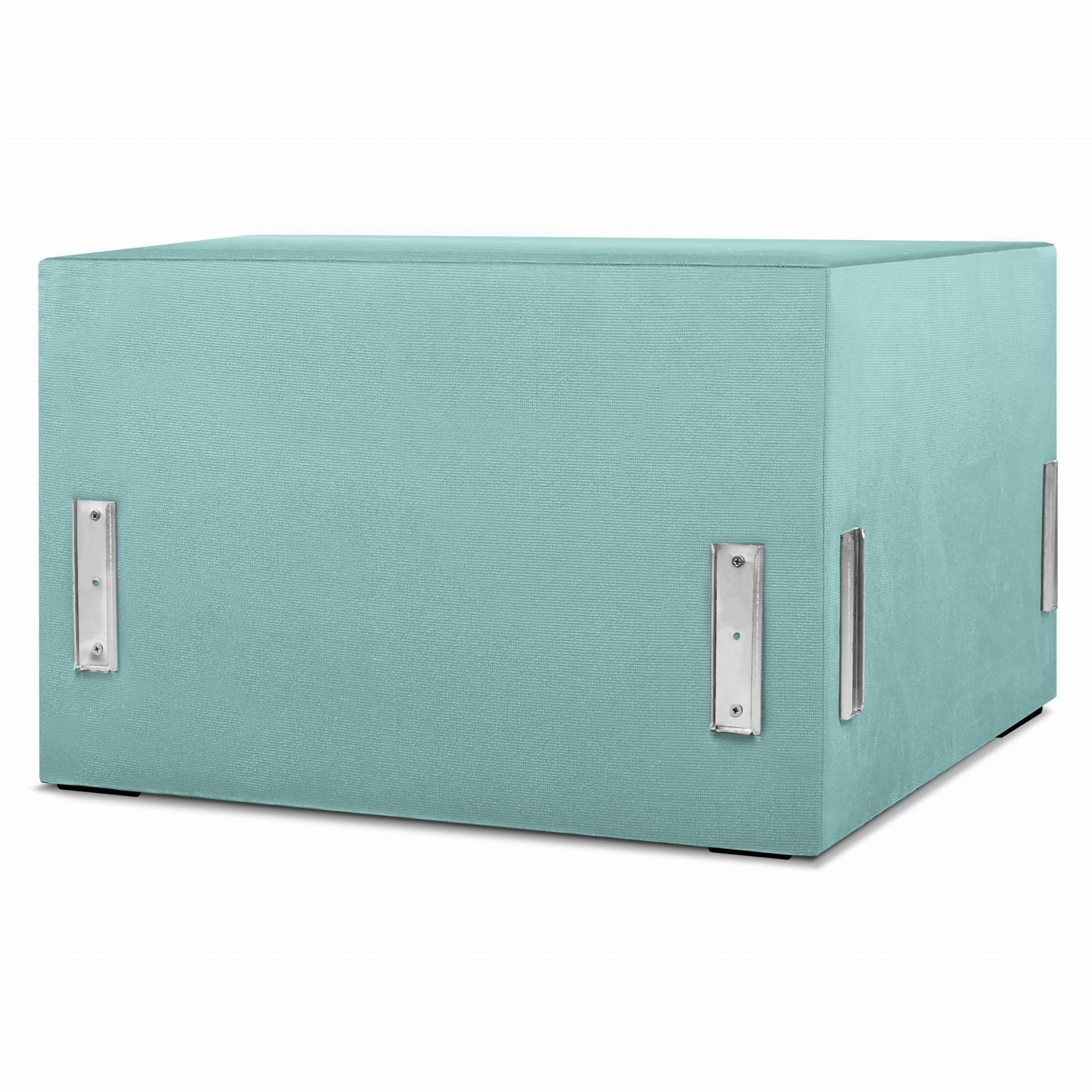 Moduł: tapicerowane siedzisko narożne LEON w kolorze miętowym z metalowymi łącznikami – segment do zestawu mebli modułowych