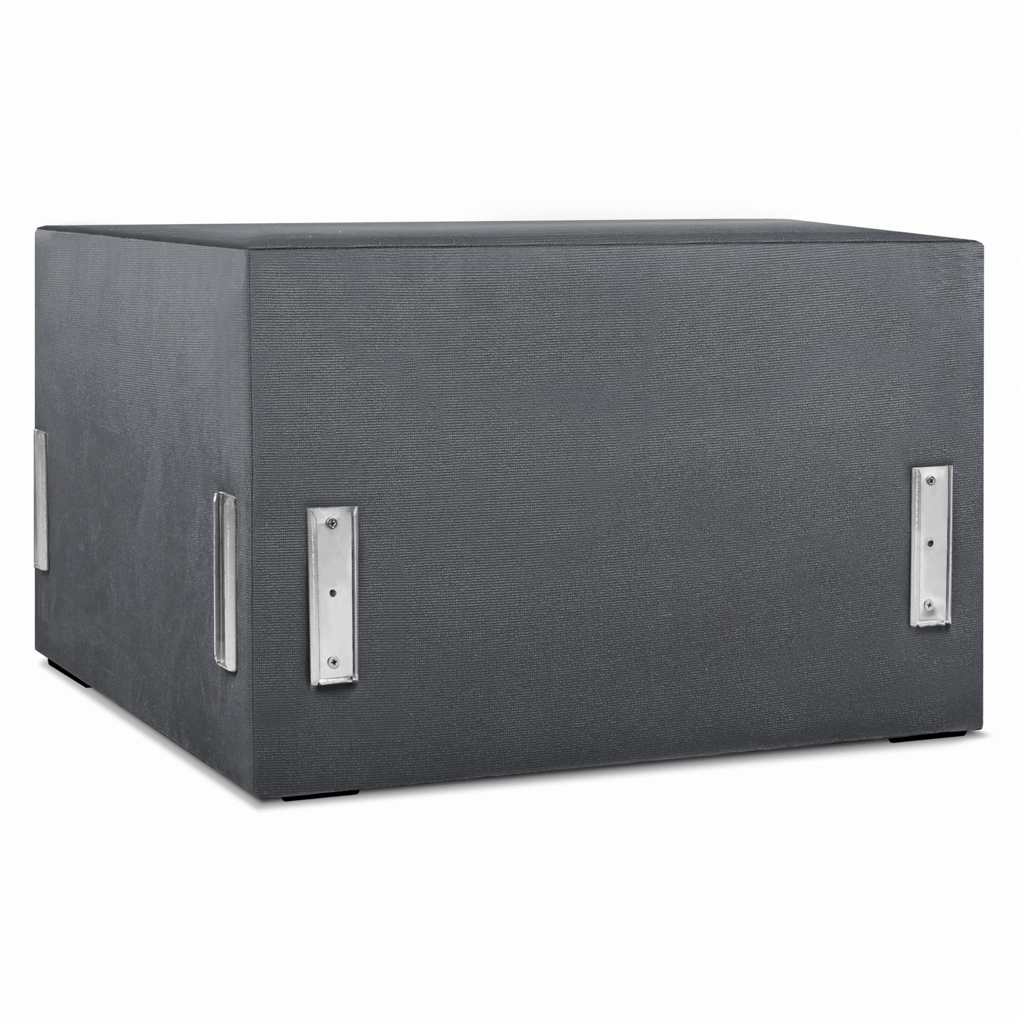 Moduł: tapicerowane siedzisko narożne LEON w kolorze szarym z metalowymi łącznikami – segment do zestawu mebli modułowych