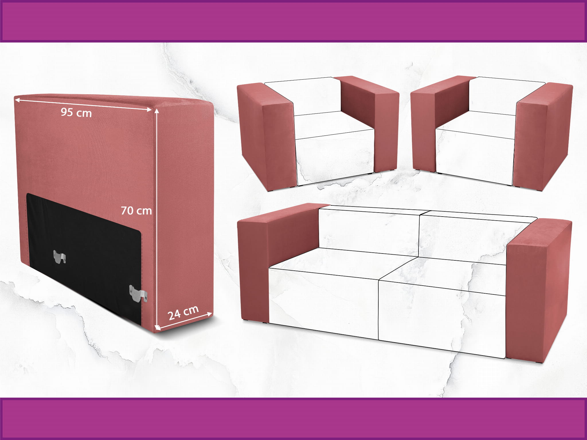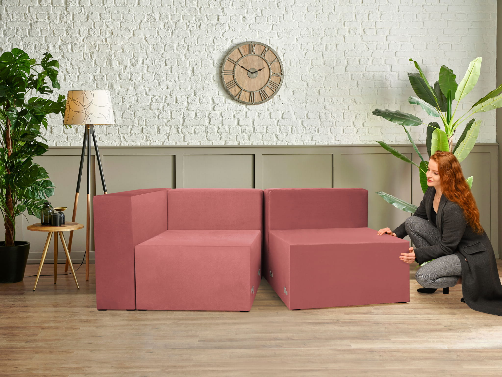 Miękki tapicerowany podłokietnik w kolorze różowym LEON – element systemu modułowego do połączenia z pozostałymi modułami