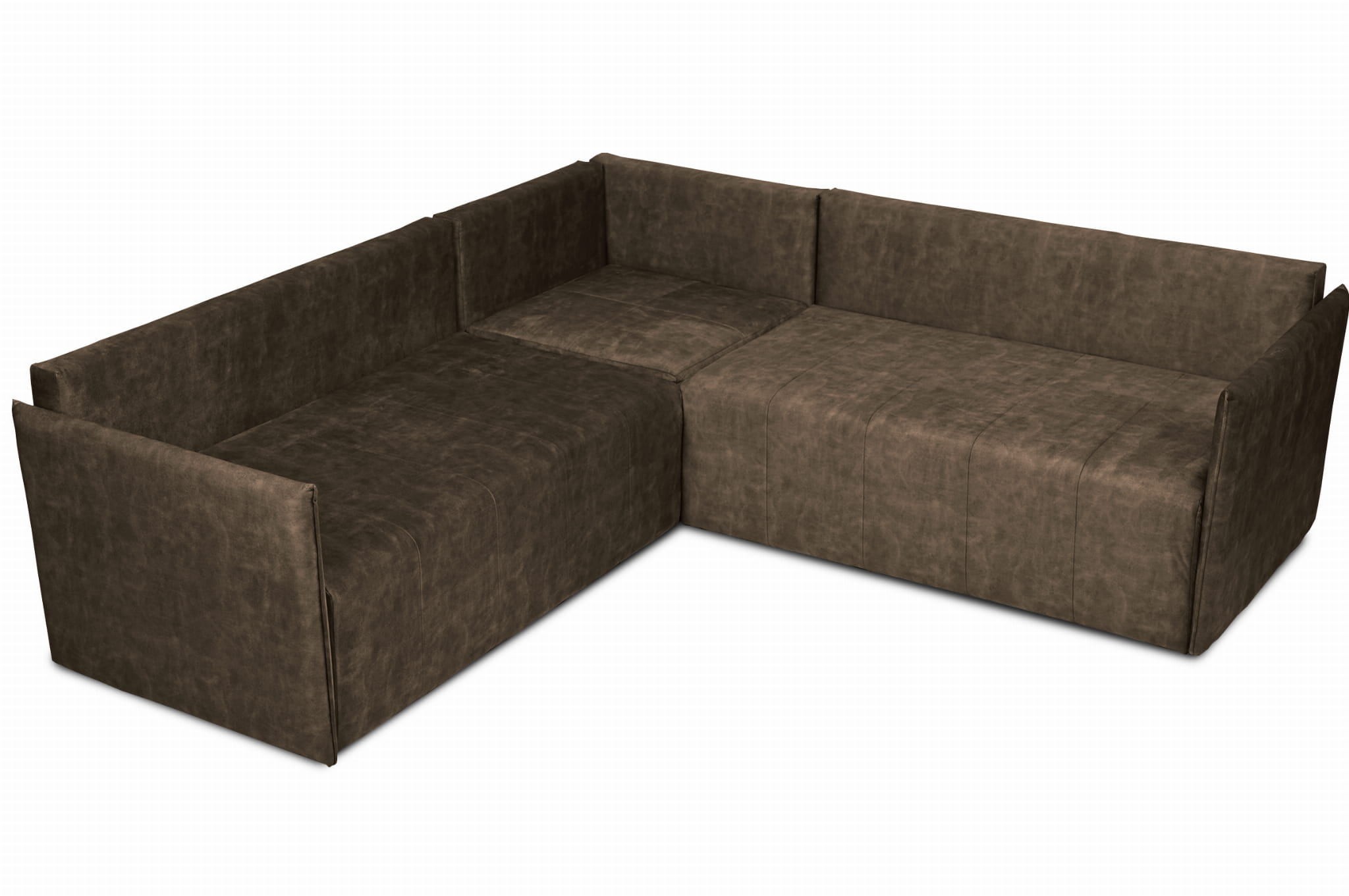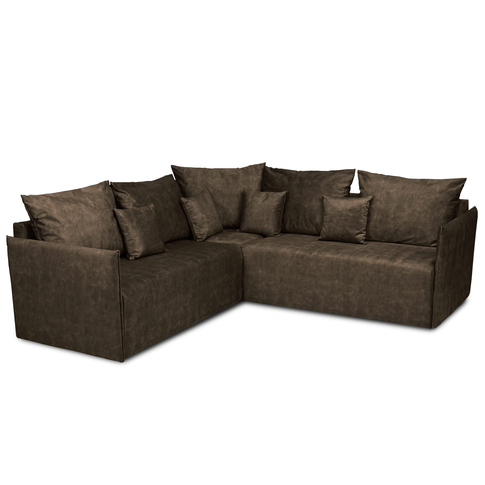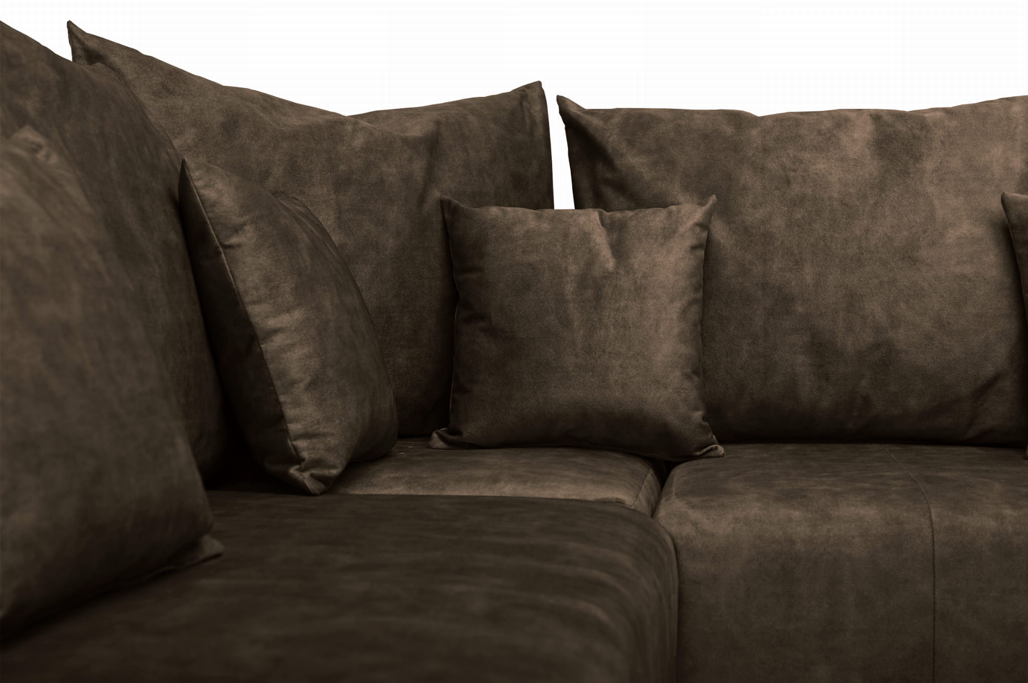 Narożnik OLAF z miękkimi poduszkami z welurowej tkaniny w kolorze ciemnobrązowym – wygodna sofa narożna do salonu