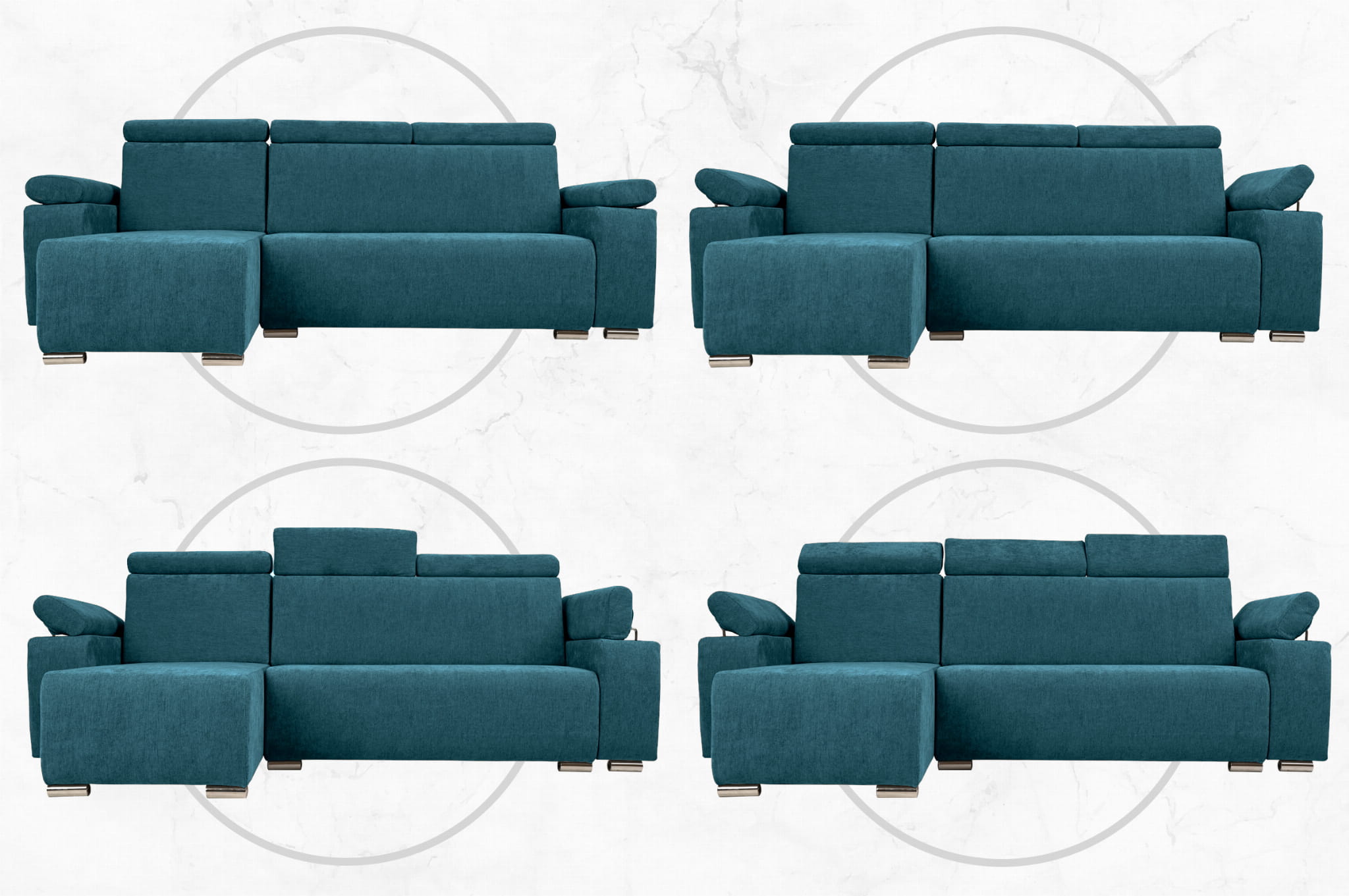 Narożnik lewy z regulowanymi zagłówkami i podłokietnikami MILAN w kolorze morskim