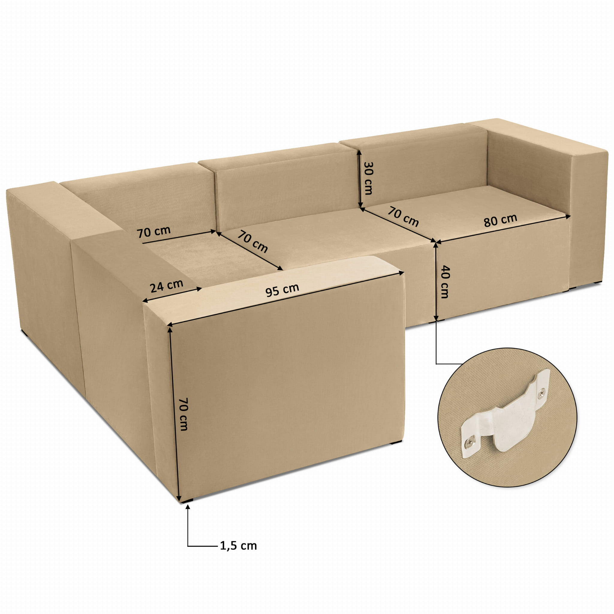 Trzyosobowy narożnik modułowy w kolorze beżowym LEON – element systemu modułowego samodzielny i do połączenia
