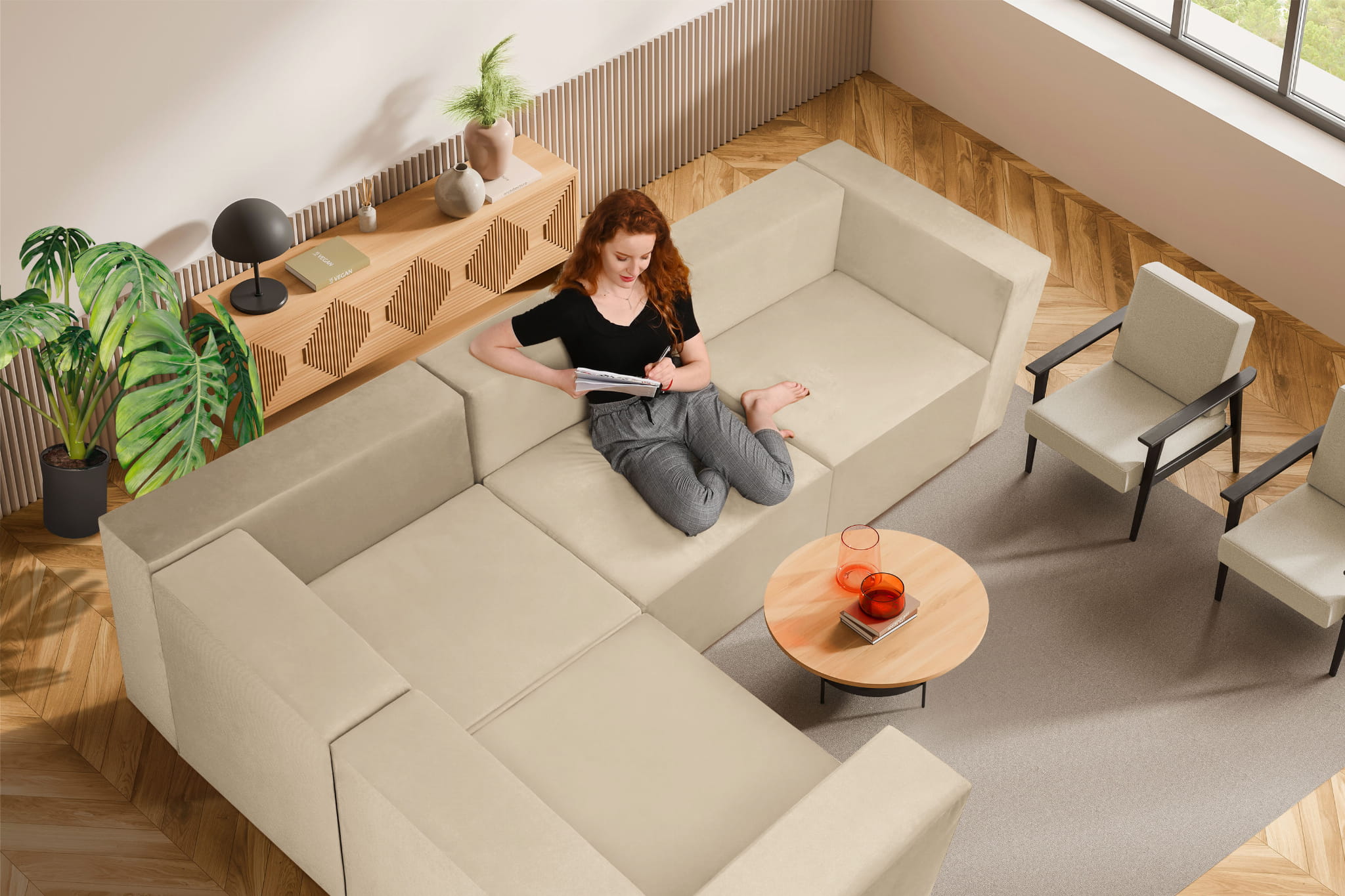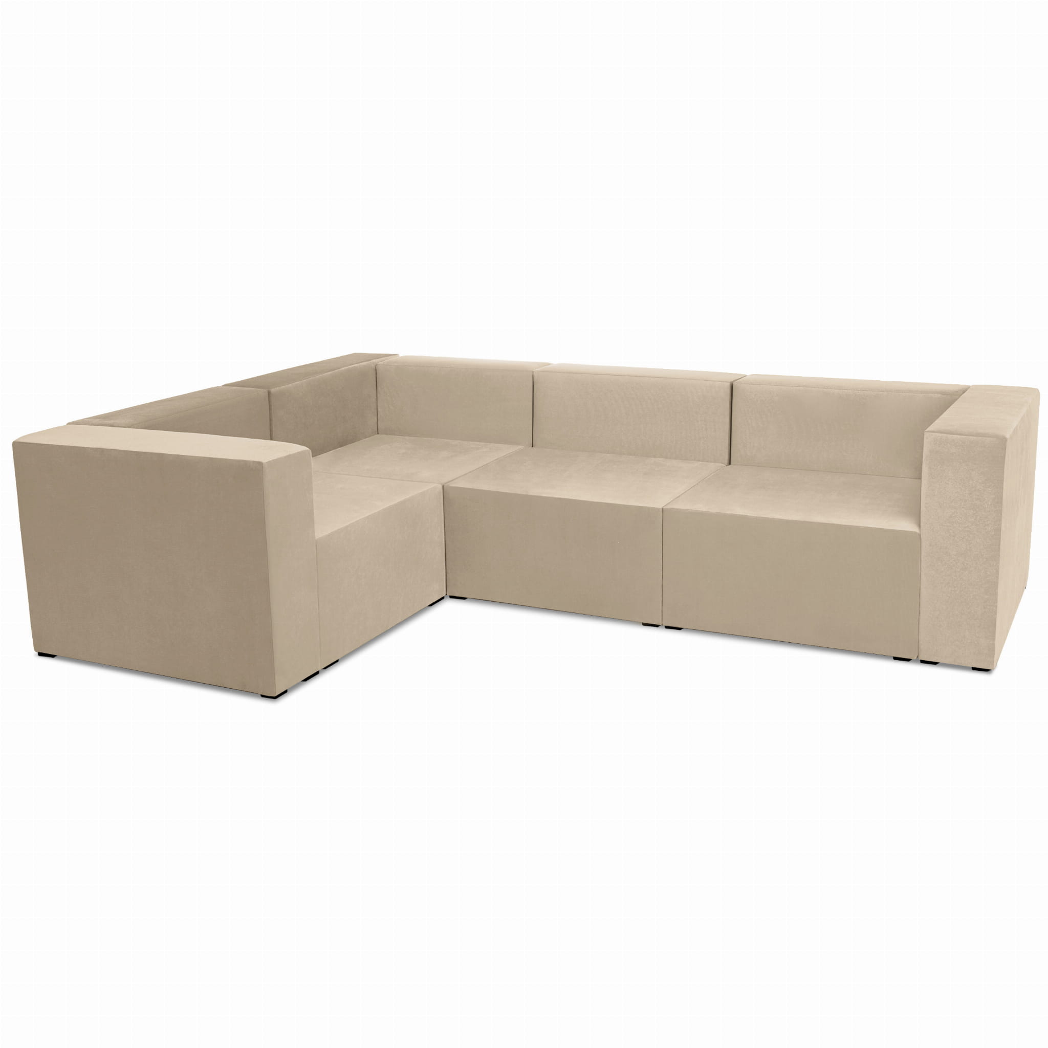 Trzyosobowy narożnik modułowy w kolorze beżowym LEON – element systemu modułowego samodzielny i do połączenia