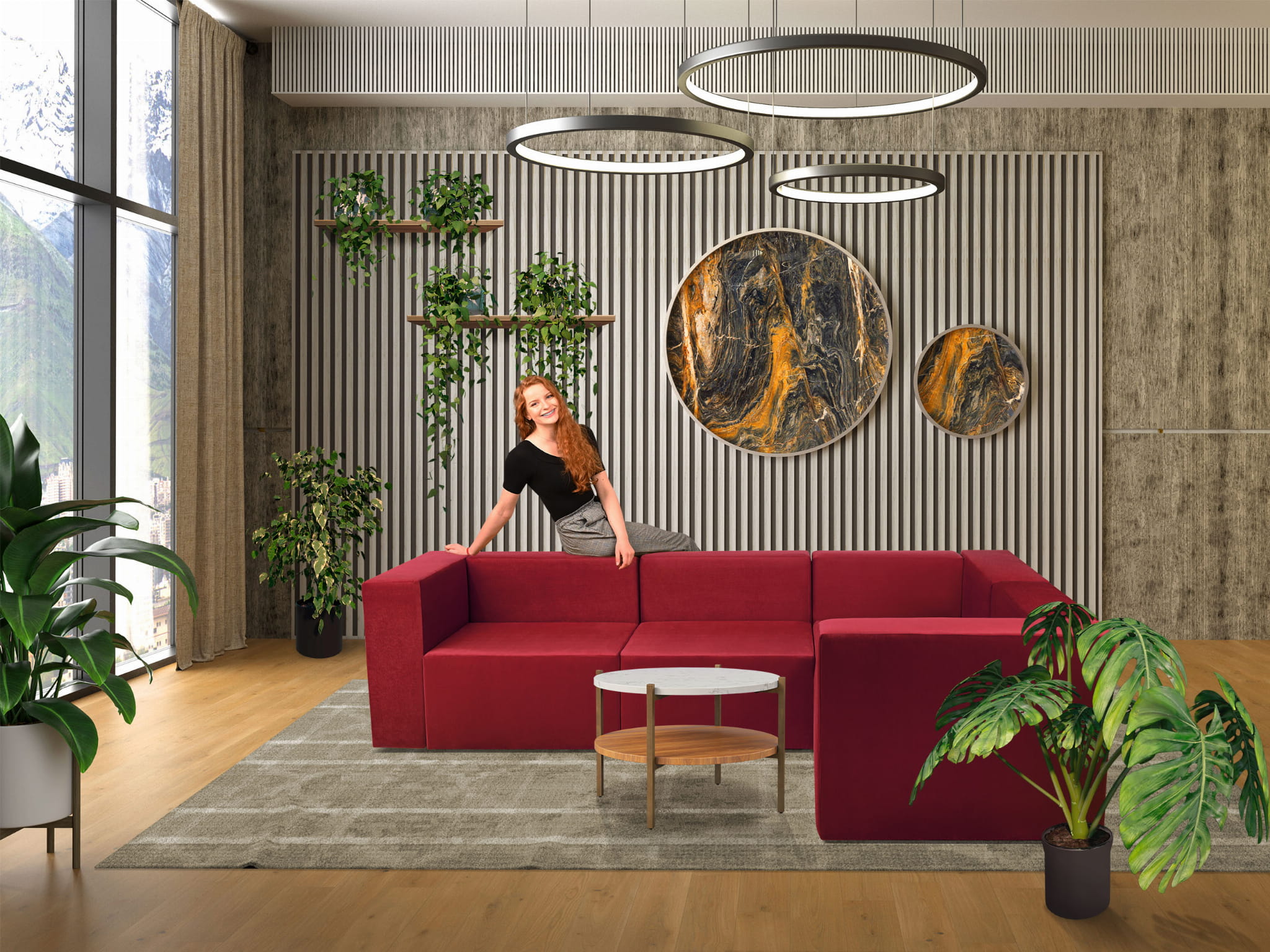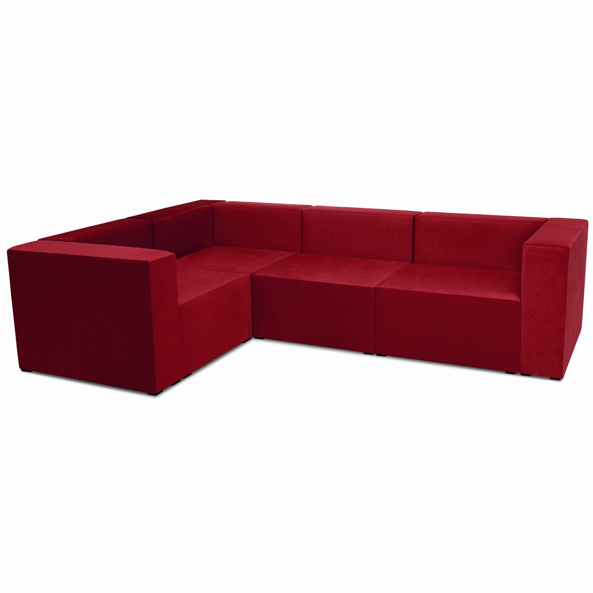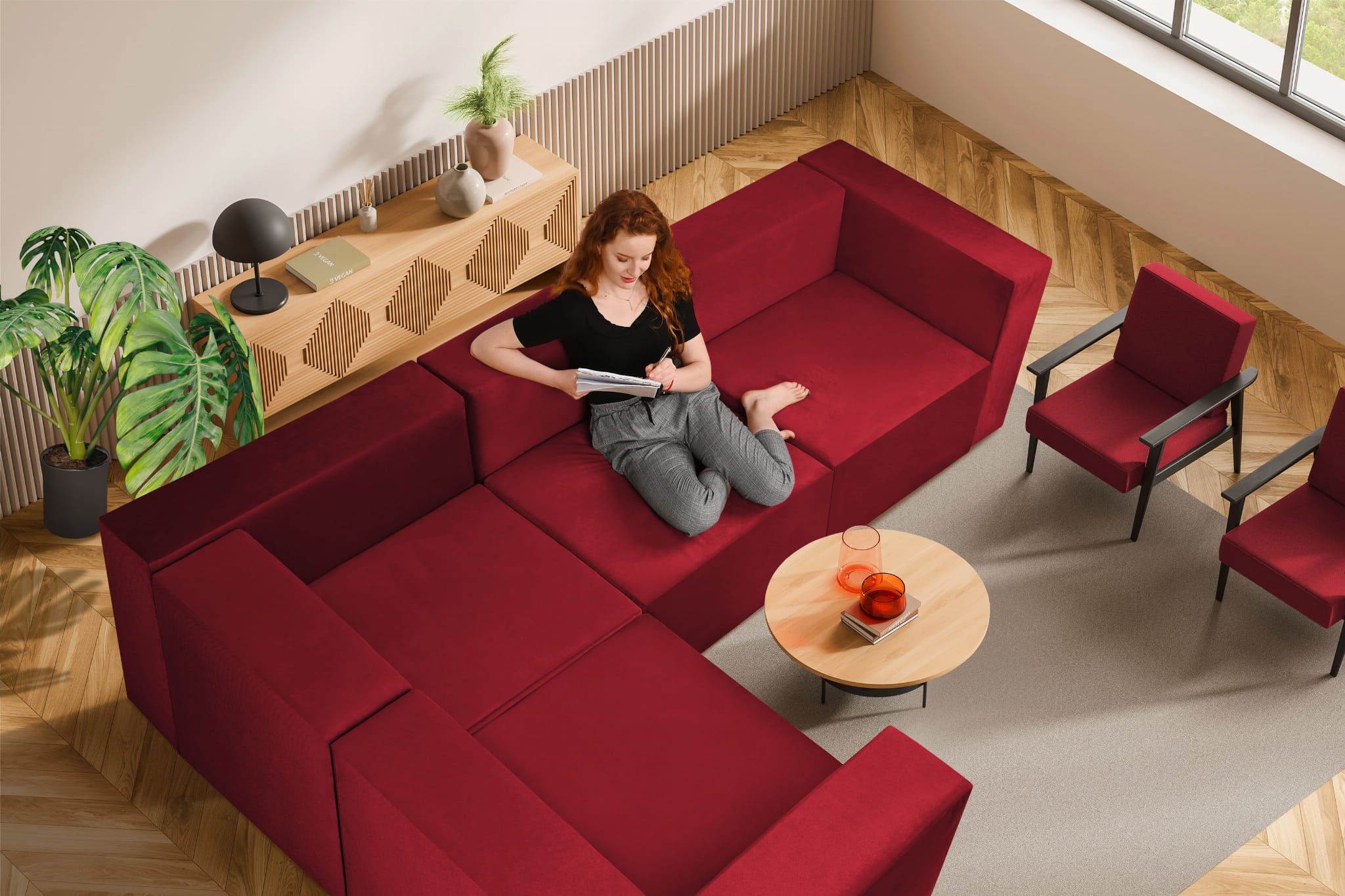 Trzyosobowy narożnik modułowy w kolorze czerwonym LEON – element systemu modułowego samodzielny i do połączenia