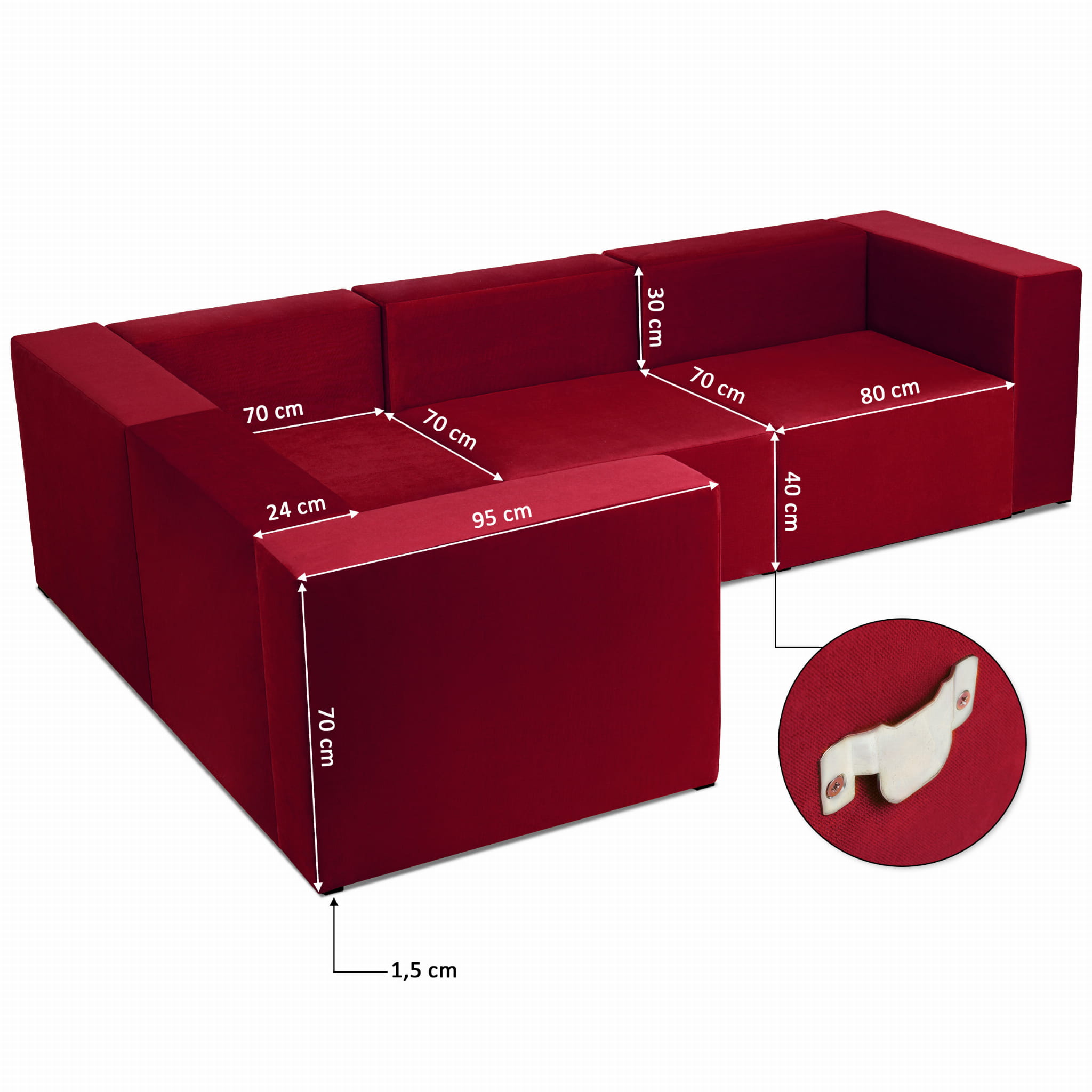 Narożnik modułowy 3-osobowy LEON w kolorze czerwonym – segment do zestawu mebli modułowych: 4 siedziska, 5 oparć, 2 podłokietniki