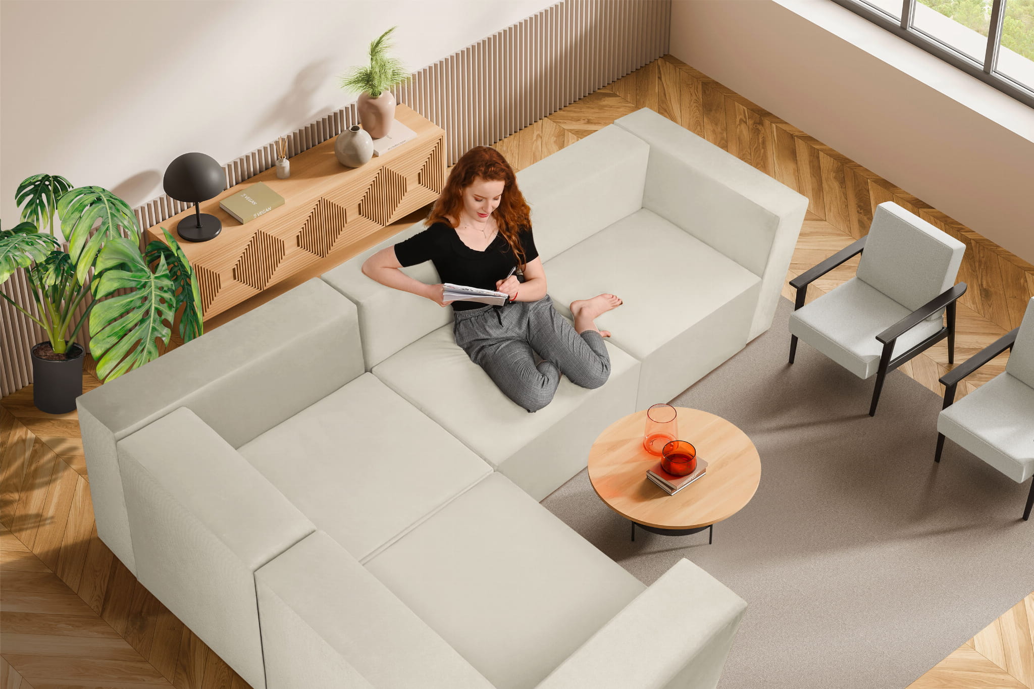 Minimalistyczny, komfortowy narożnik LEON wykorzystasz jako samodzielne siedzisko lub jeden z modułów wchodzących w skład zestawu mebli segmentowych.