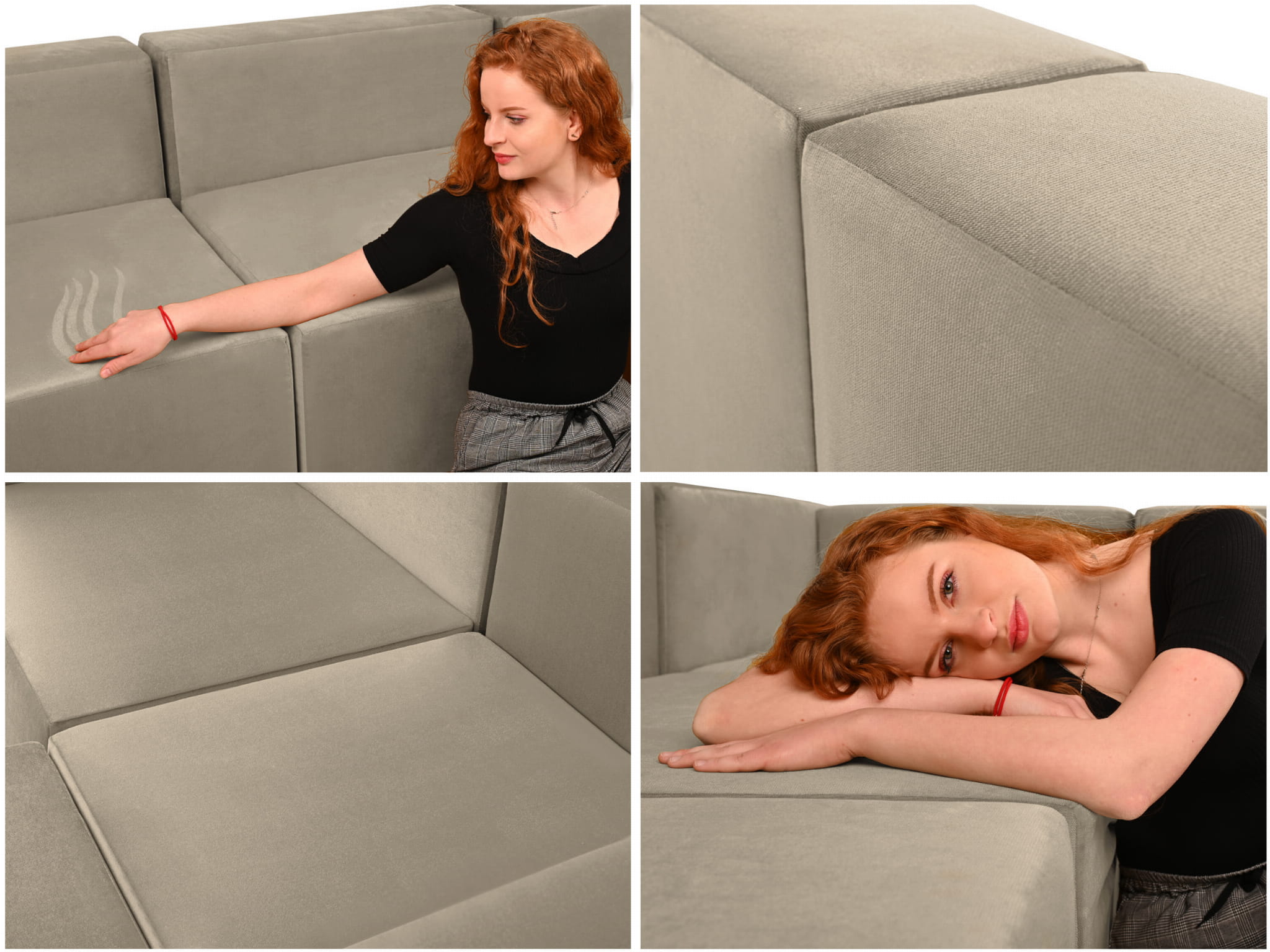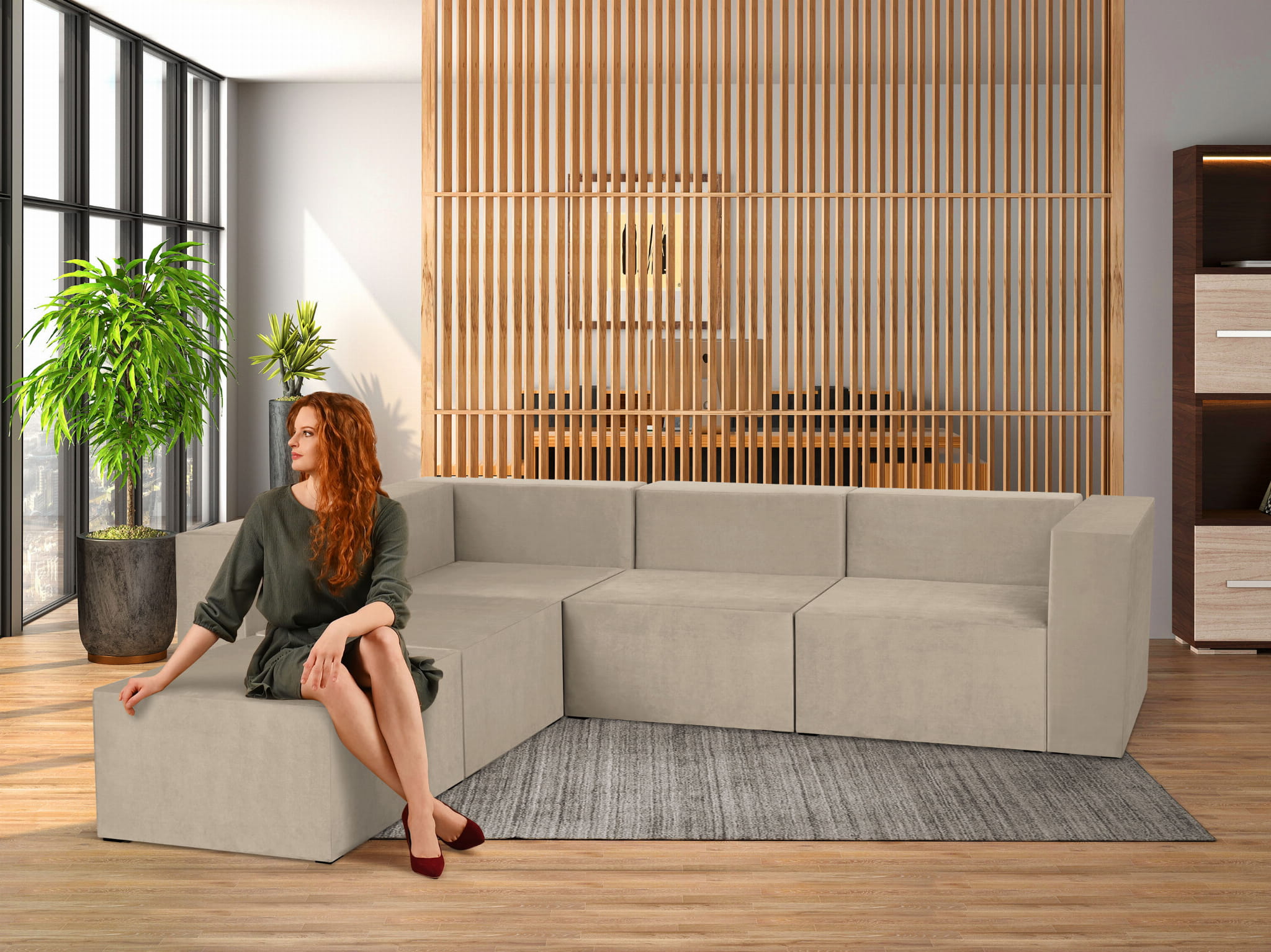 Czterosobowy narożnik modułowy w kolorze beżowym LEON – element systemu modułowego samodzielny i do połączenia