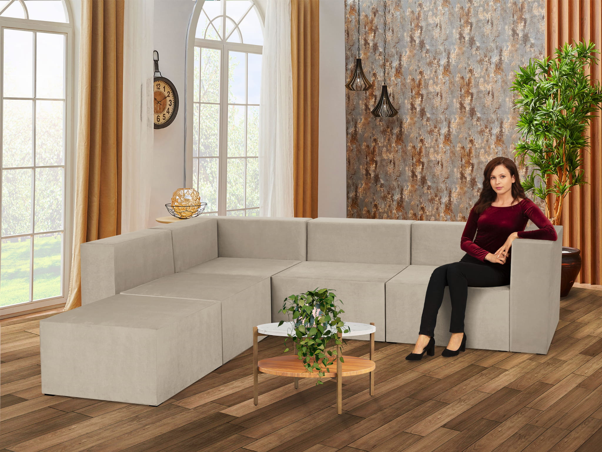 Narożnik modułowy 4-osobowy LEON w kolorze beżowym – segment do zestawu mebli modułowych: 5 siedzisk, 5 oparć, 1 podłokietnik