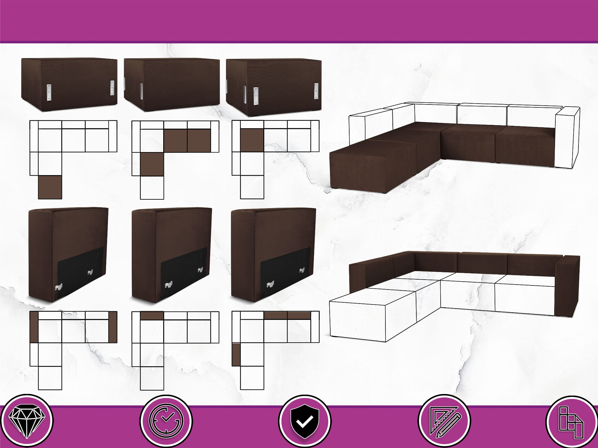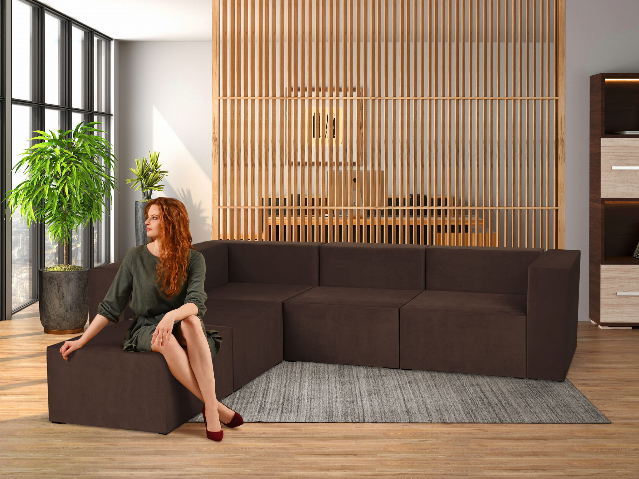 Czterosobowy narożnik modułowy w kolorze brązowym LEON – element systemu modułowego samodzielny i do połączenia