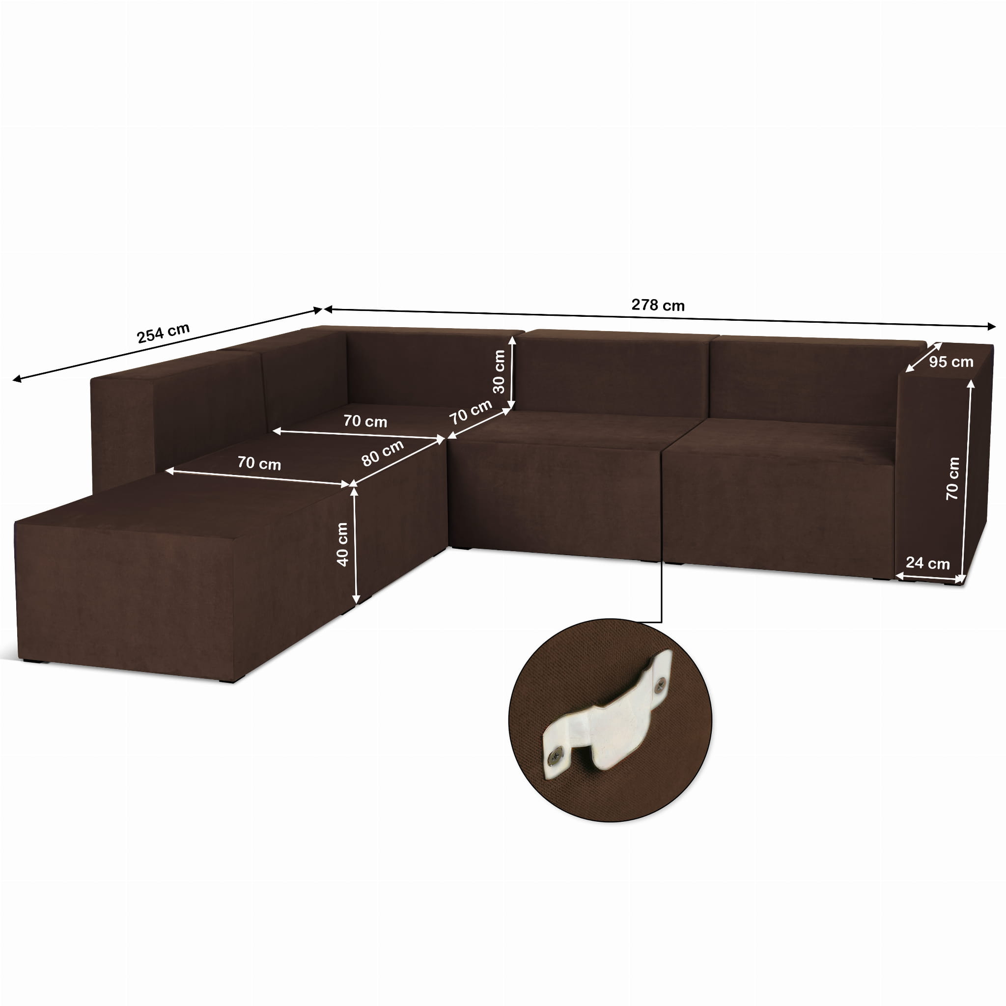 Narożnik modułowy 4-osobowy LEON w kolorze brązowym – segment do zestawu mebli modułowych: 5 siedzisk, 5 oparć, 1 podłokietnik