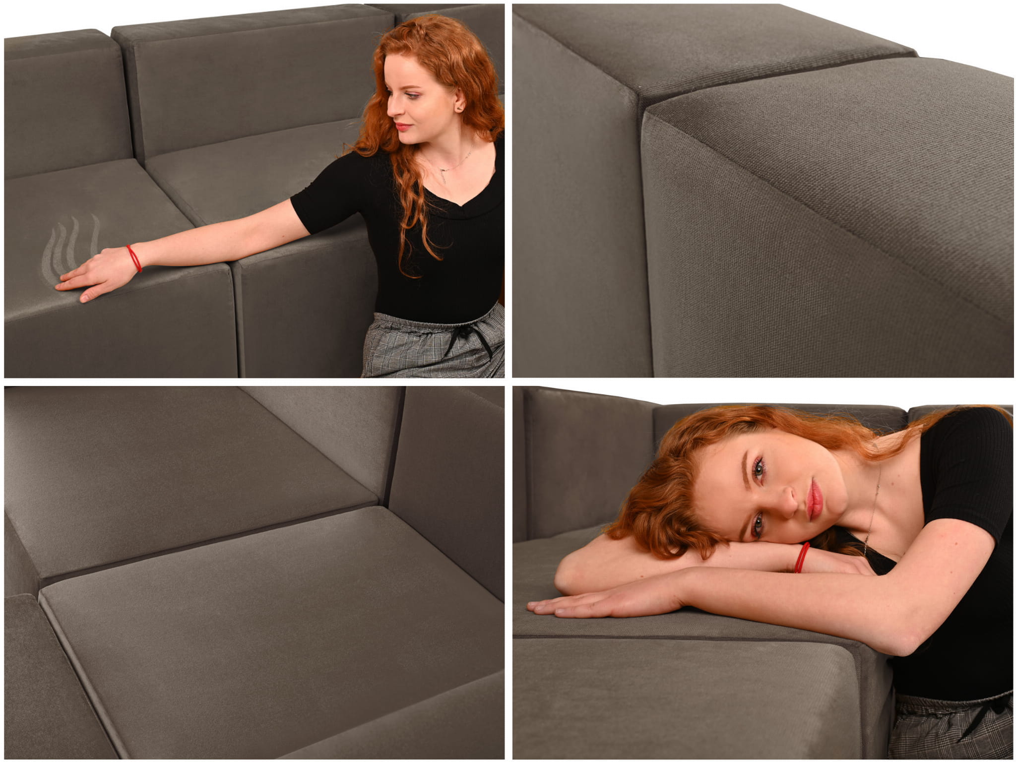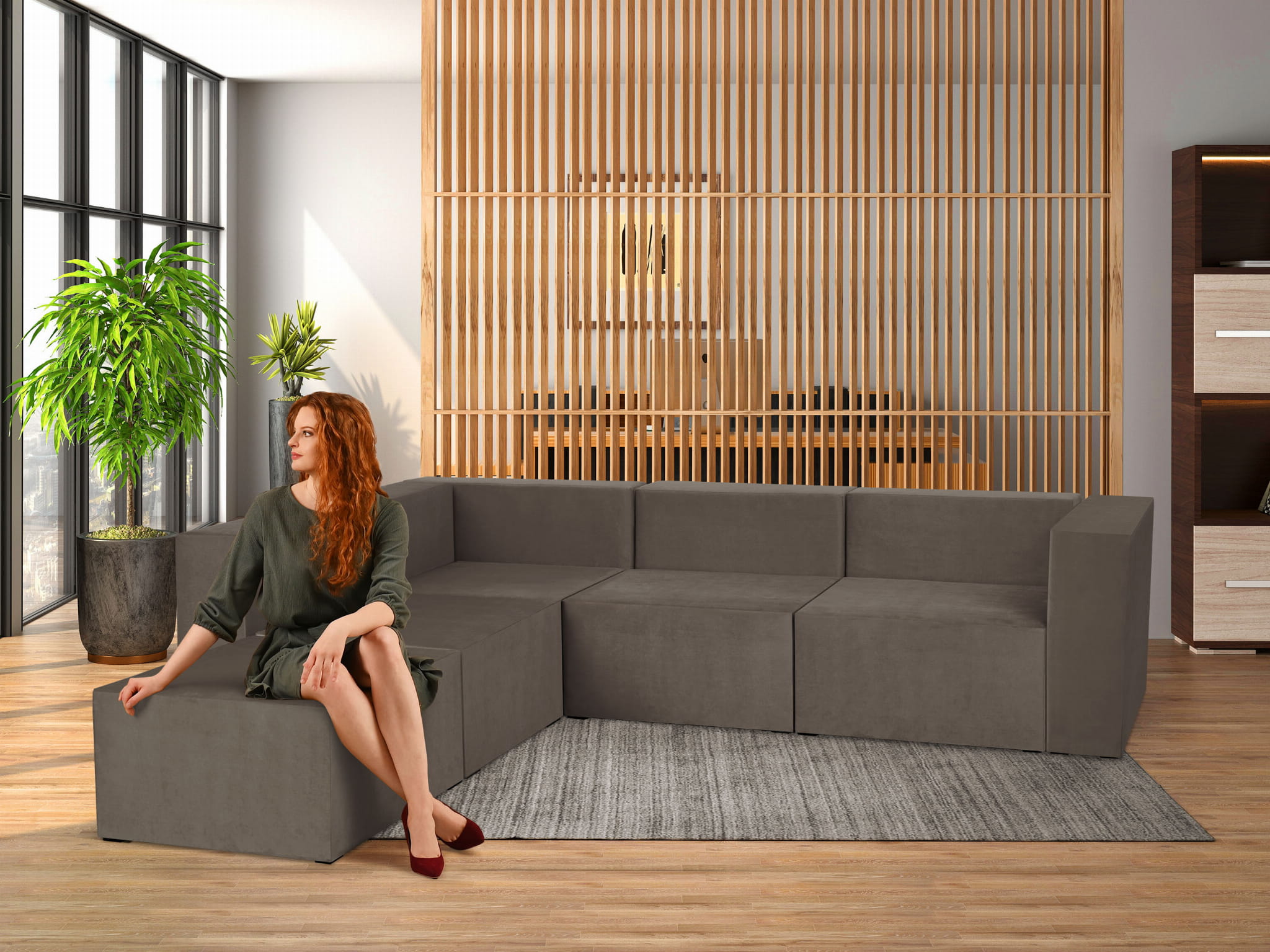 Czterosobowy narożnik modułowy w kolorze brązowym LEON – element systemu modułowego samodzielny i do połączenia
