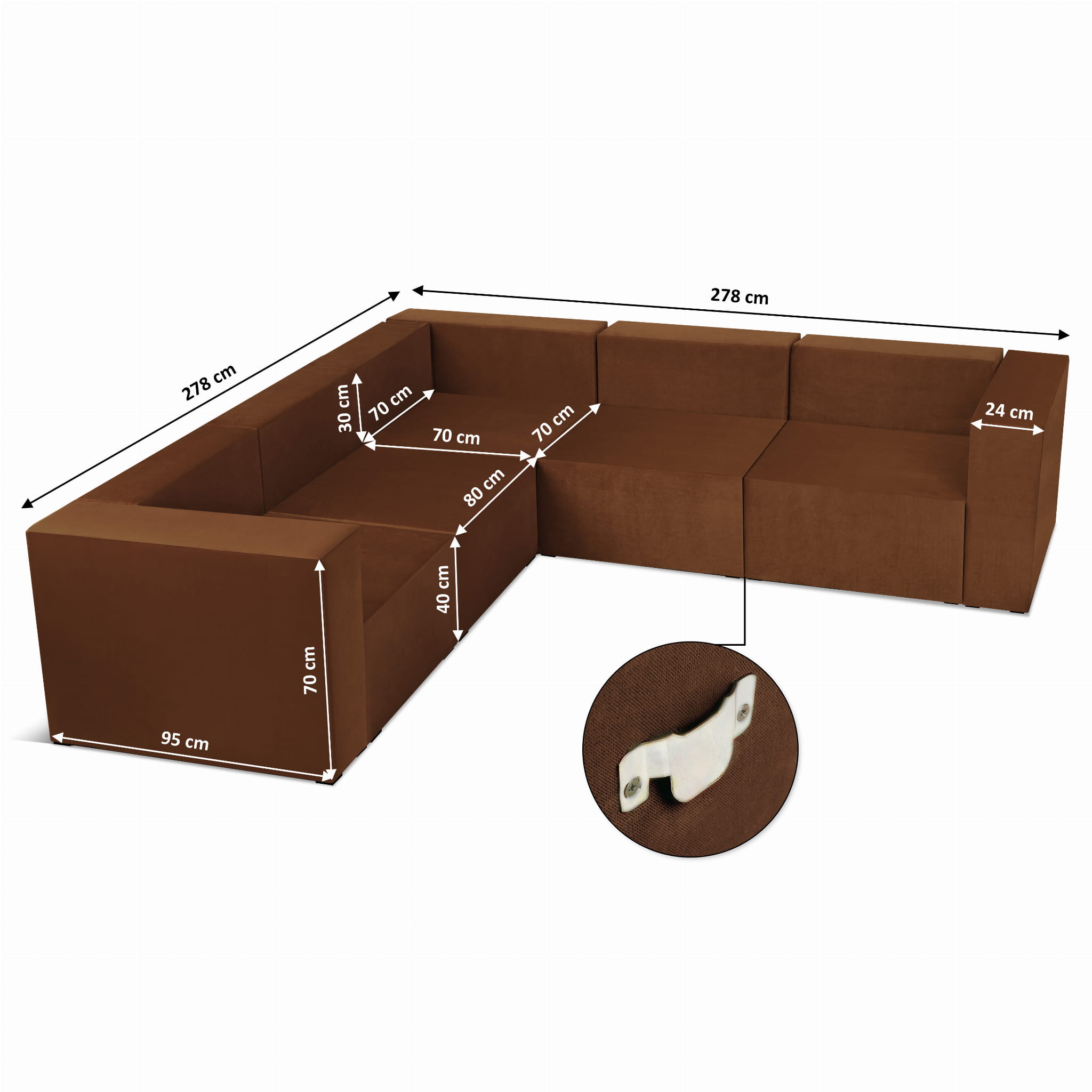 Narożnik modułowy 4-osobowy LEON w kolorze brązowym – segment do zestawu mebli modułowych: 5 siedzisk, 6 oparć, 2 podłokietniki