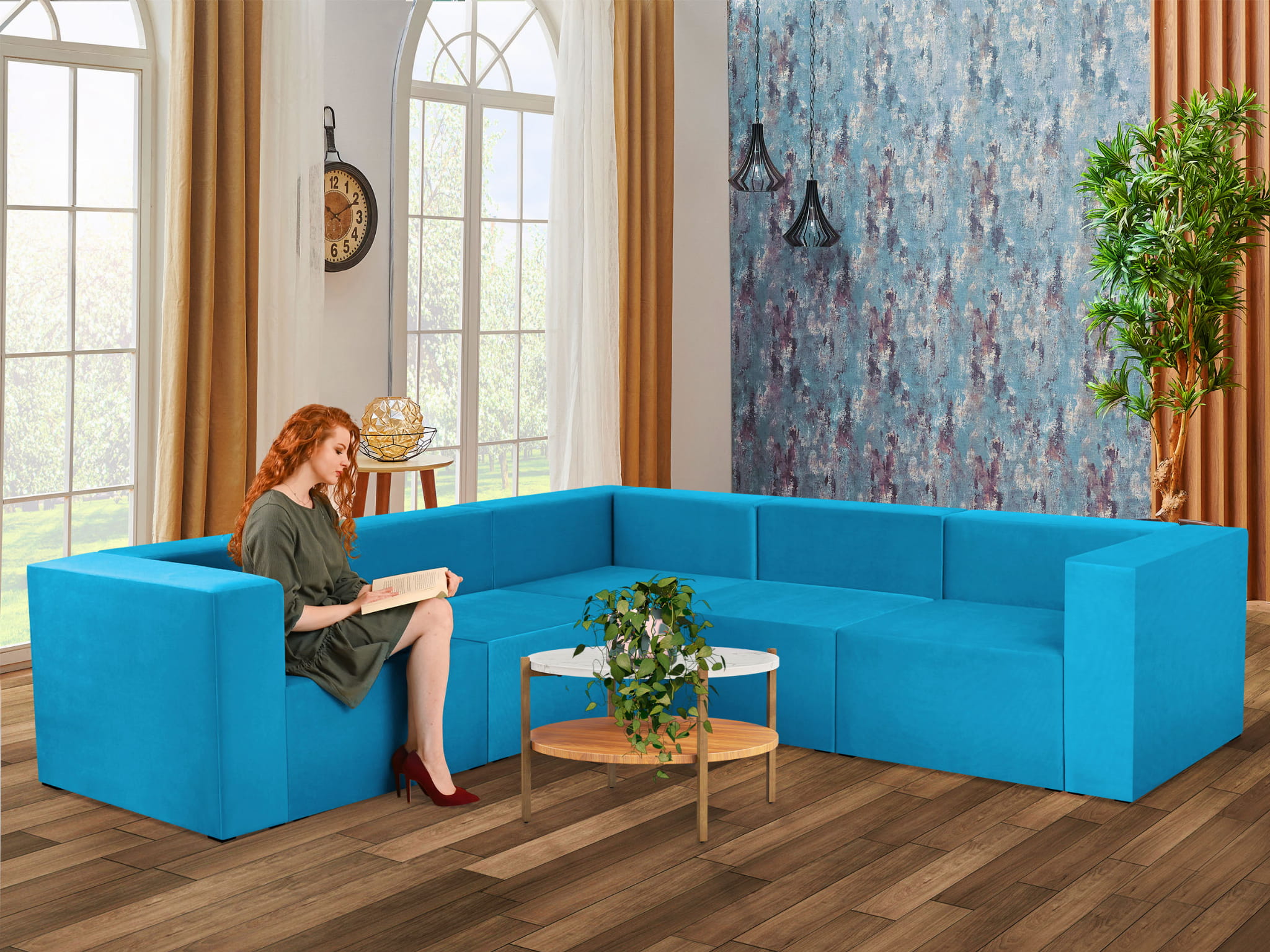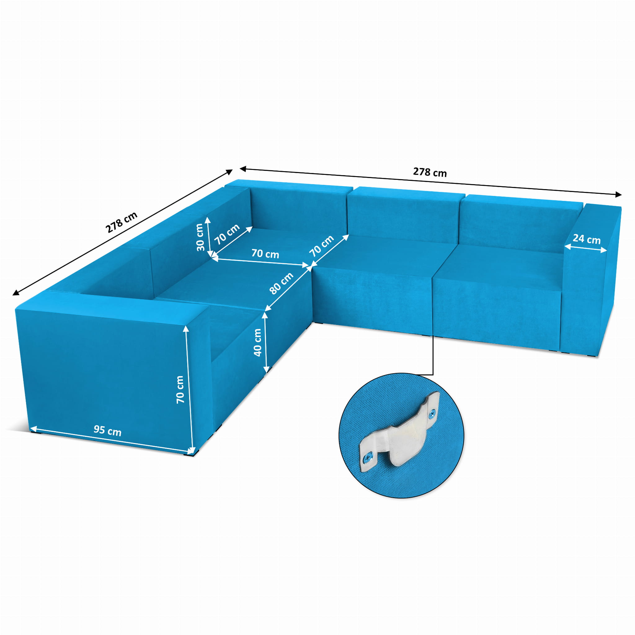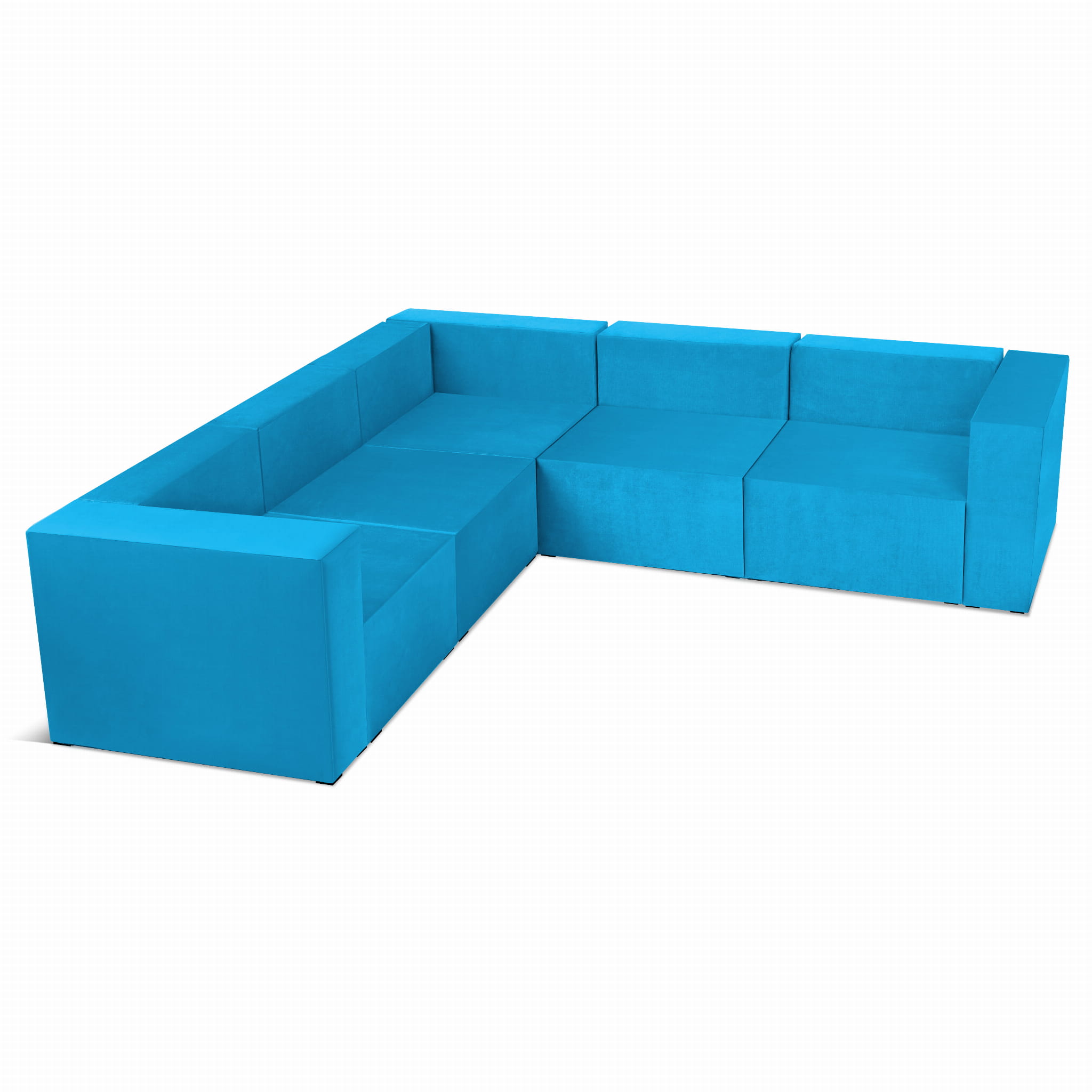 Narożnik modułowy 4-osobowy LEON w kolorze lazurowym – segment do zestawu mebli modułowych: 5 siedzisk, 6 oparć, 2 podłokietniki