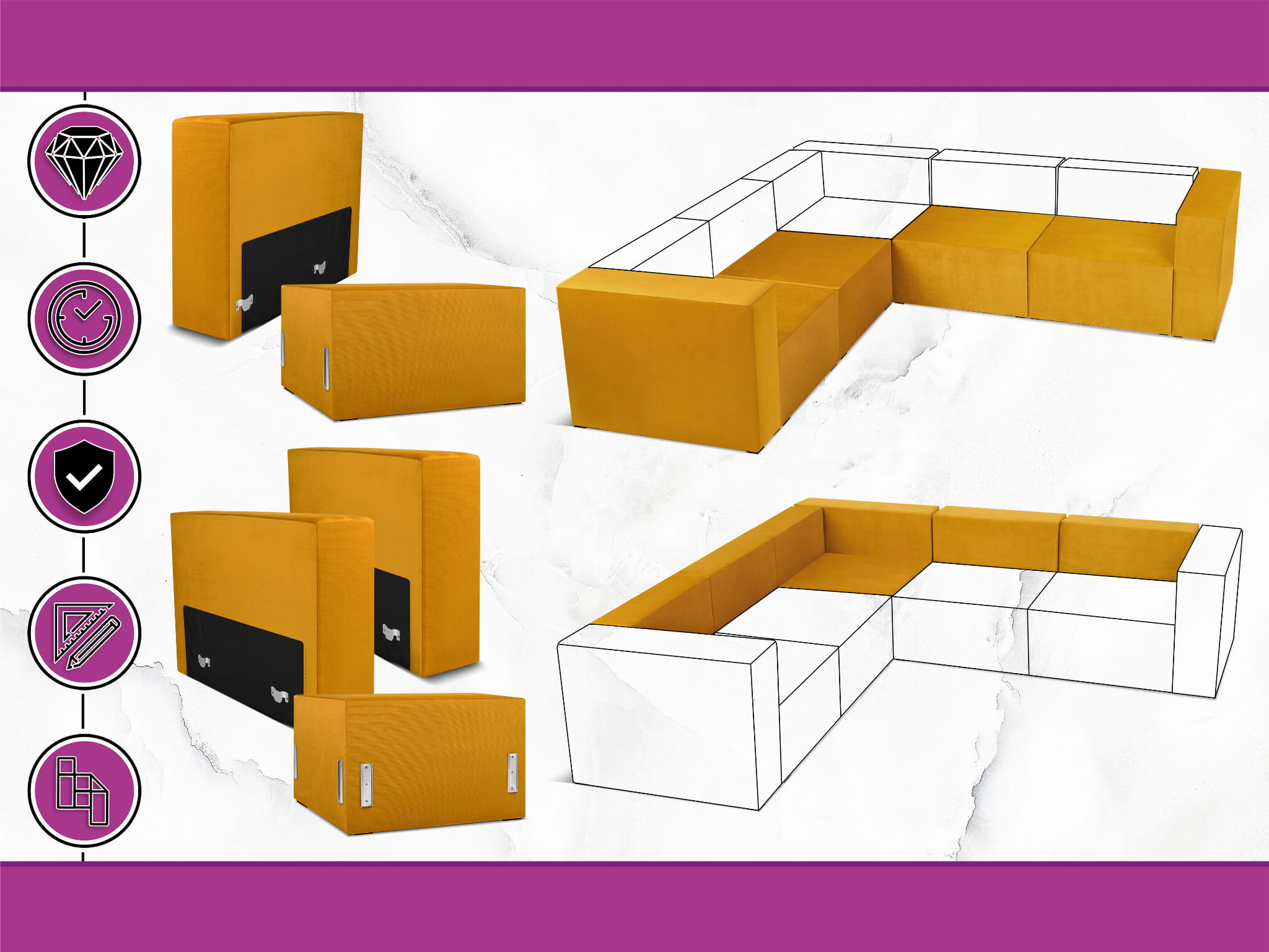 Moduł Narożnik 4-osobowy połączysz ze wszystkimi pozostałymi segmentami systemu LEON.