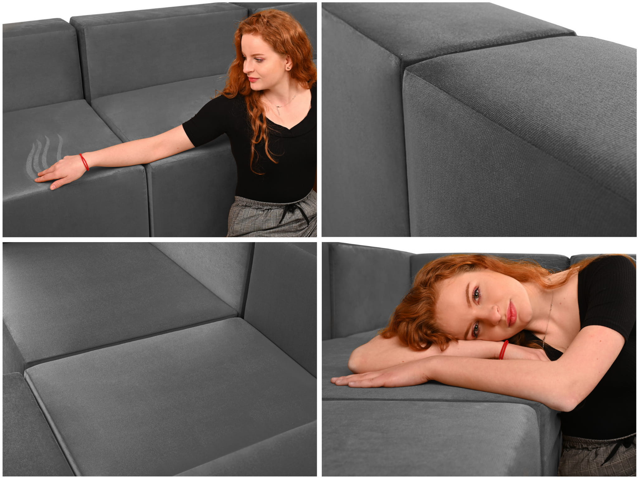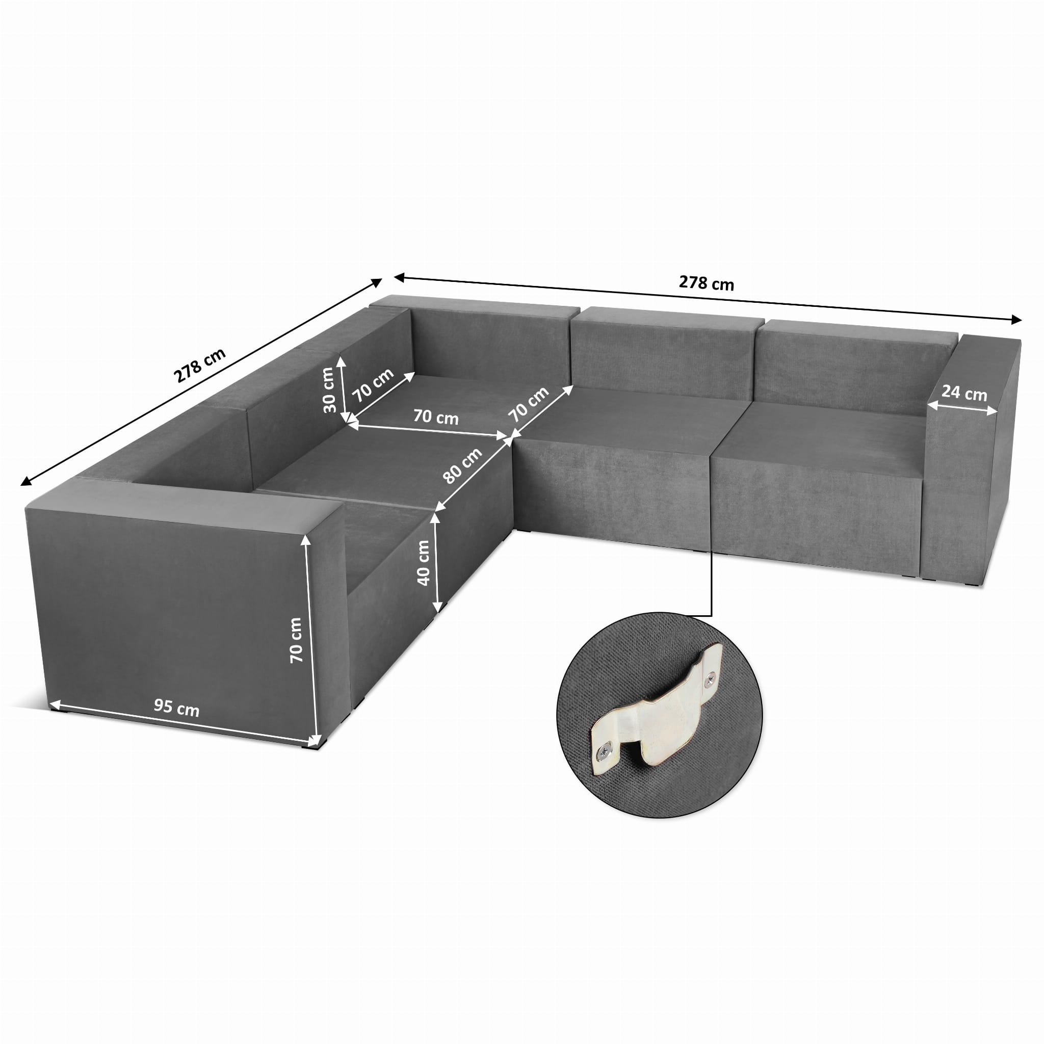 Czterosobowy narożnik modułowy w kolorze szarym LEON – element systemu modułowego samodzielny i do połączenia