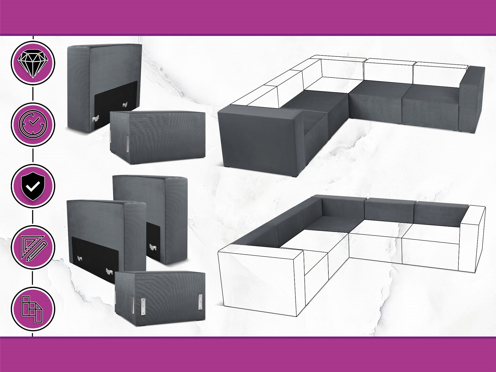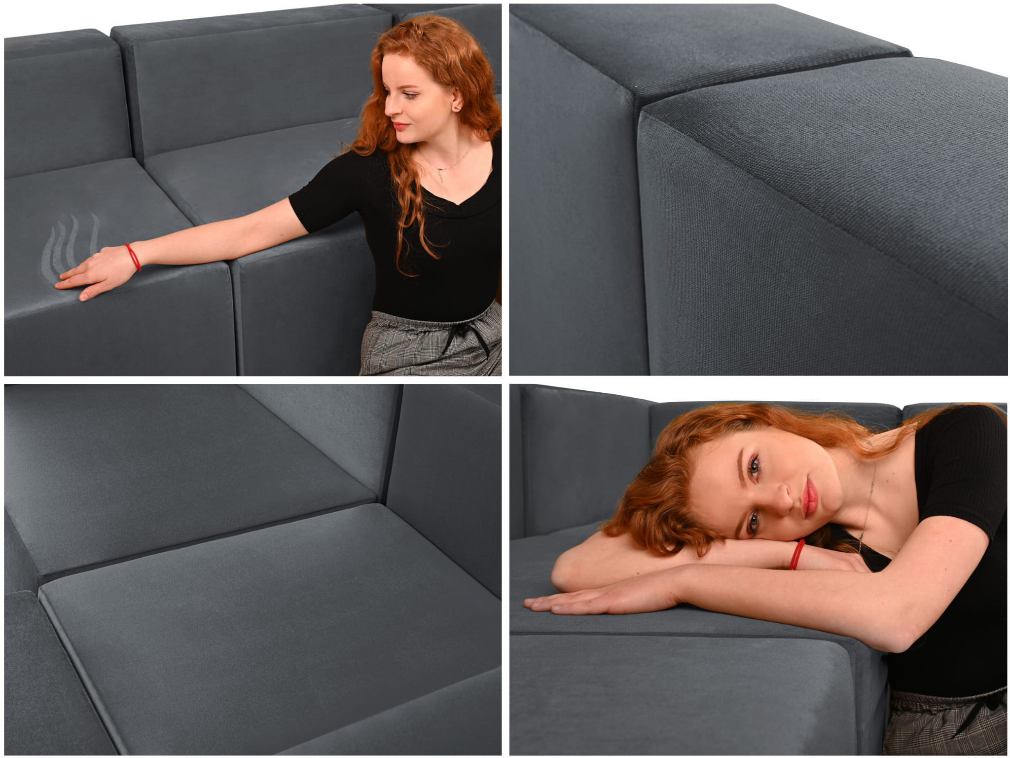 Czteroosobowy narożnik modułowy w kolorze ciemnoszarym LEON – element systemu modułowego samodzielny i do połączenia