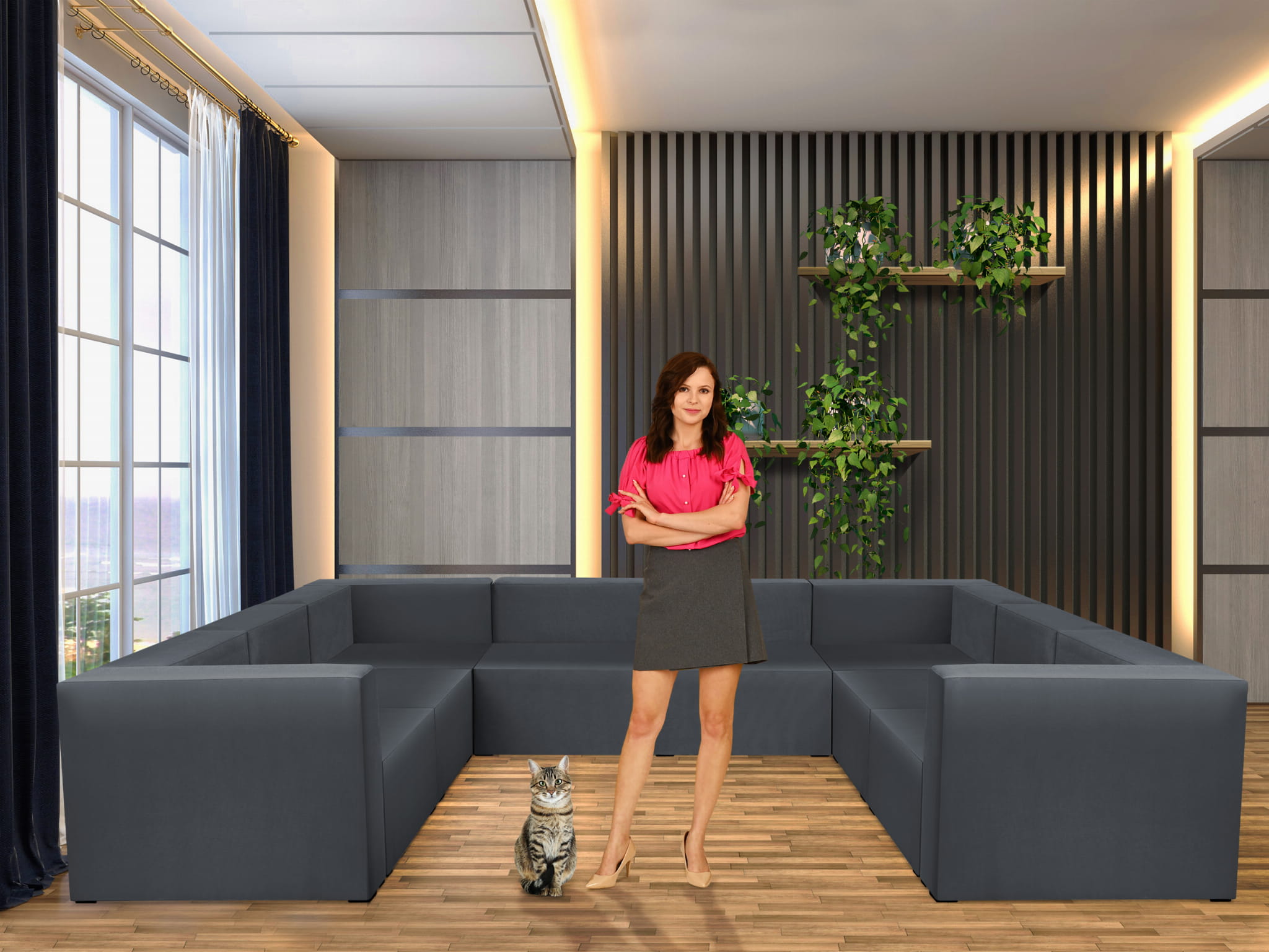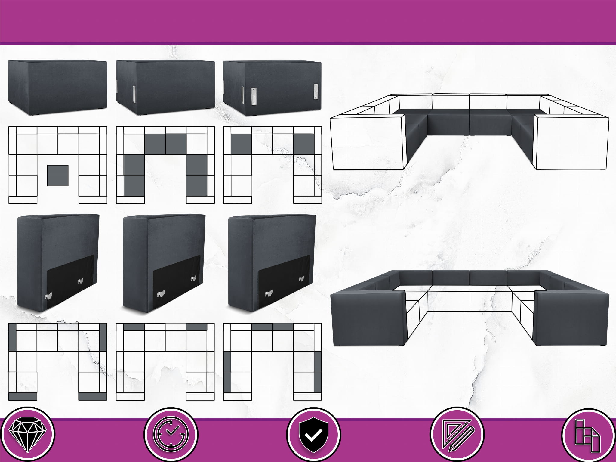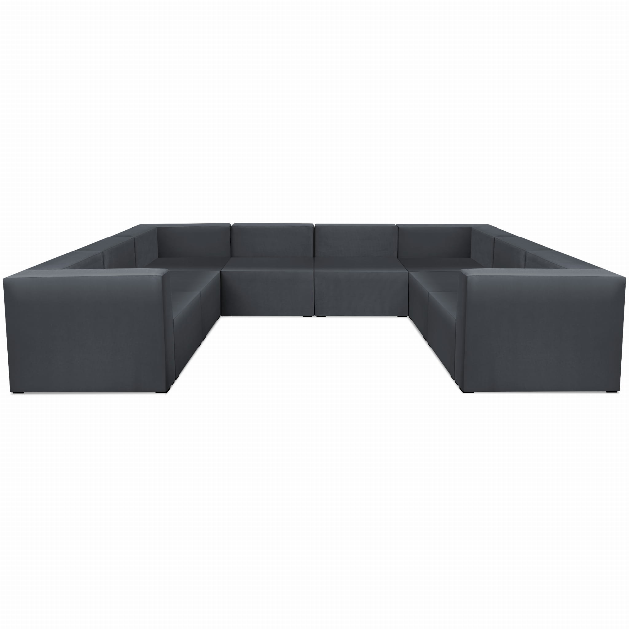 Sześcioosobowy narożnik w kształcie litery U modułowy w kolorze ciemnoszarym LEON – element systemu modułowego samodzielny i do połączenia