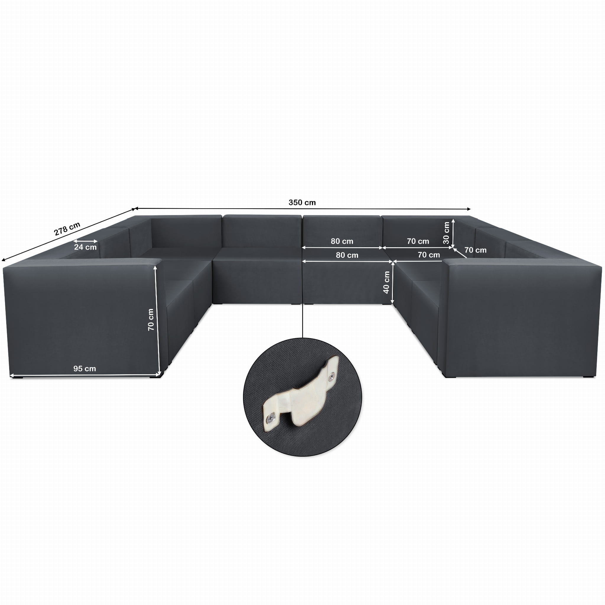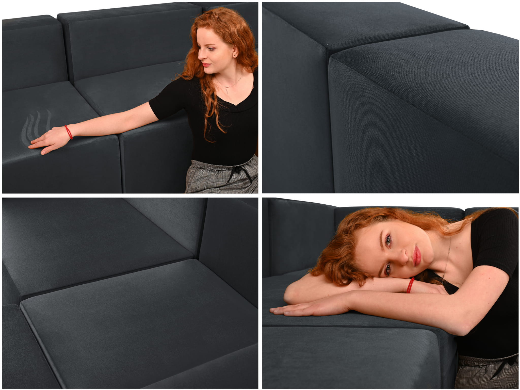 Narożnik modułowy w kształcie litery U 6-osobowy LEON w kolorze ciemnoszarym – segment do zestawu mebli modułowych: 8 siedzisk, 10 oparć, 2 podłokietniki