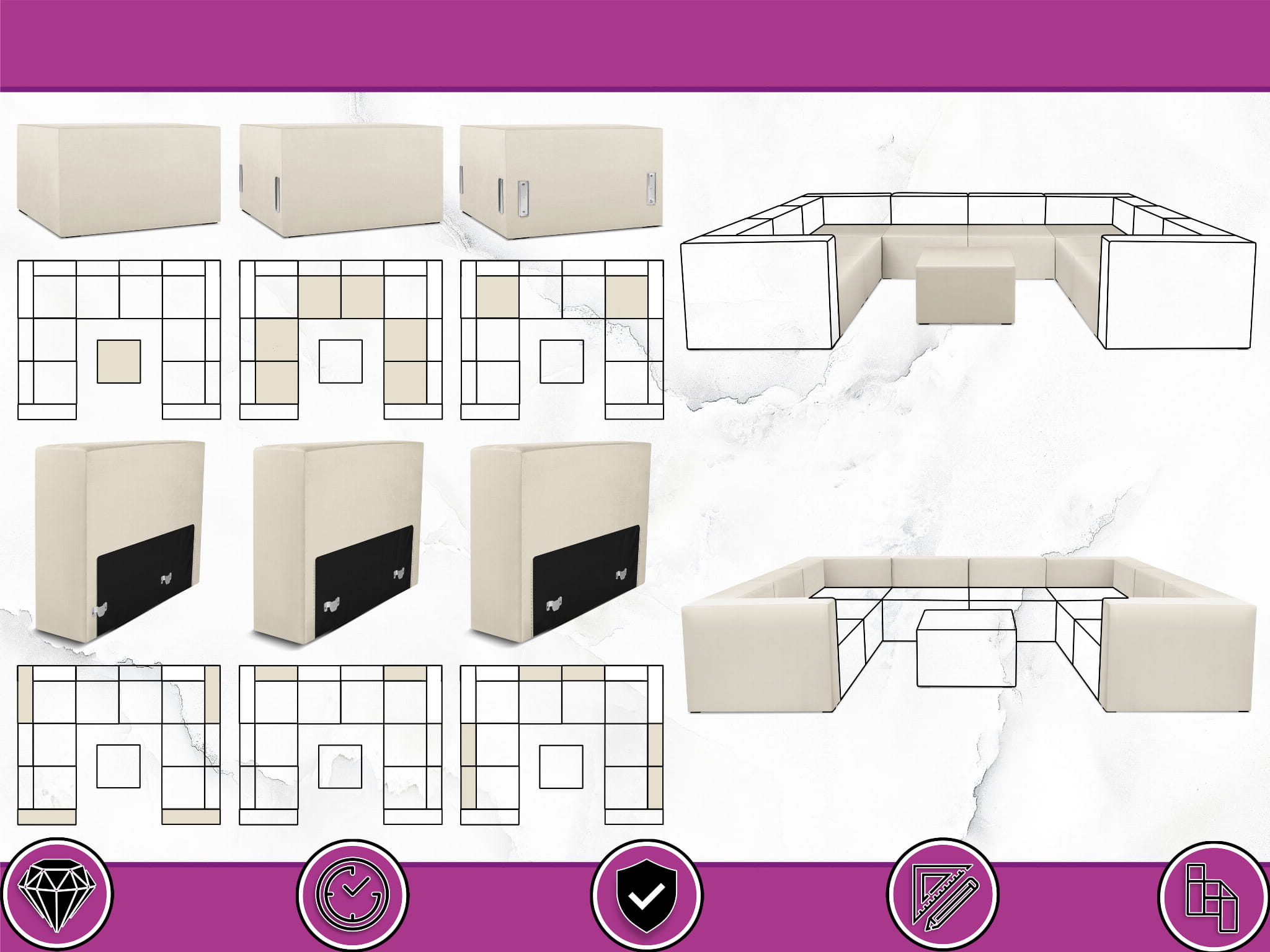 Meble systemowe połączysz ze sobą dowolnie zgodnie z własnymi potrzebami i upodobaniami, dzięki czemu stworzysz w swoim salonie lub sypialni niepowtarzalny, spersonalizowany zestaw wypoczynkowy.