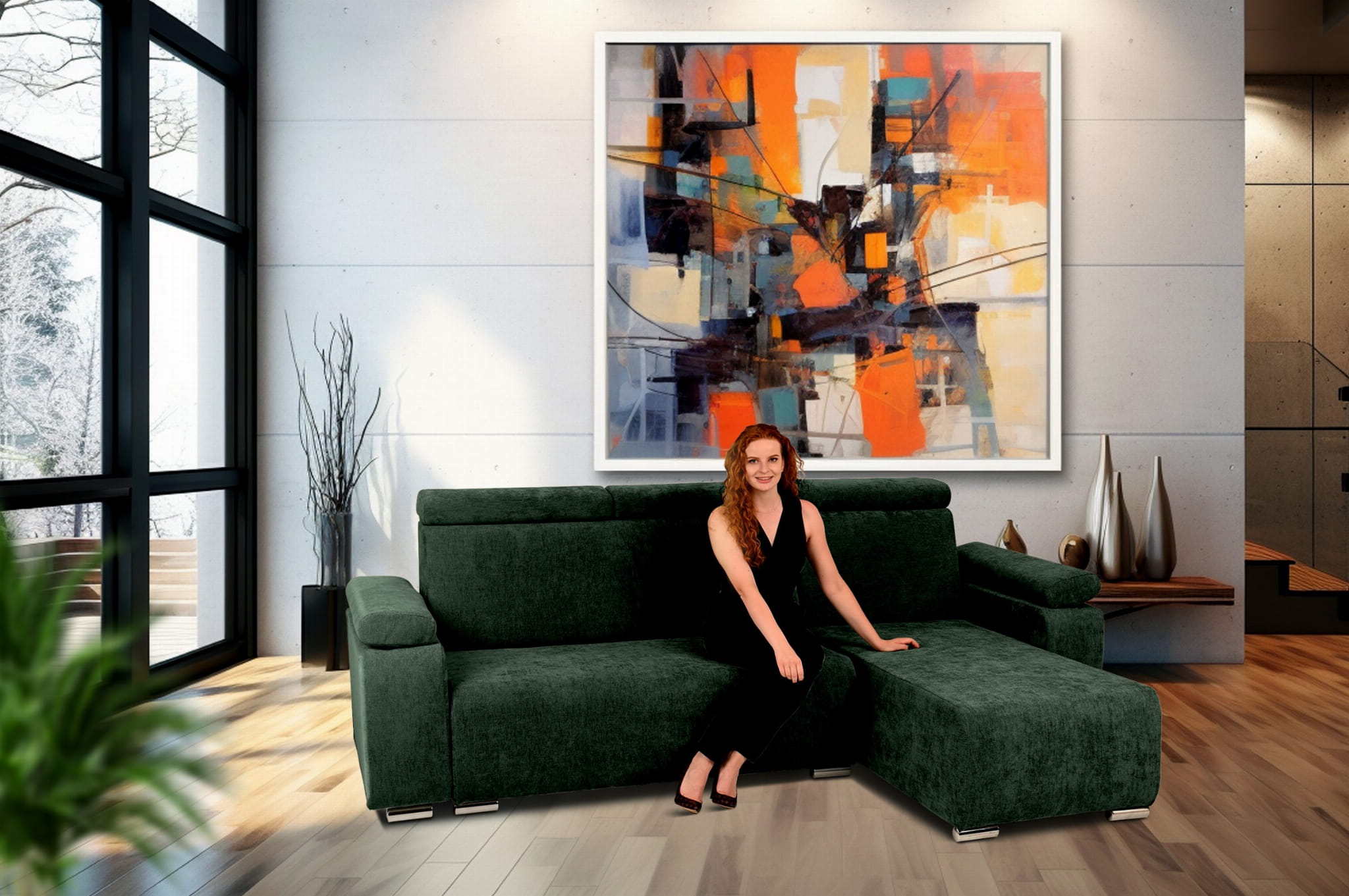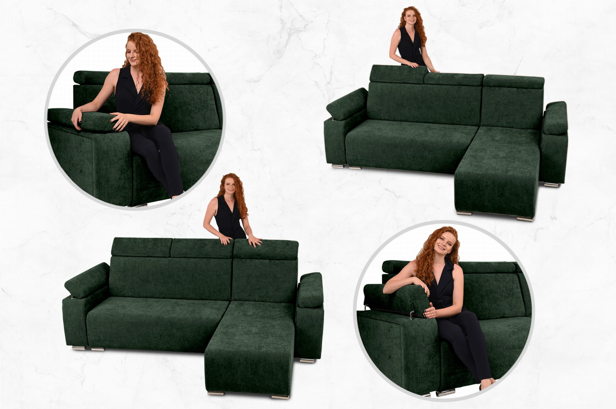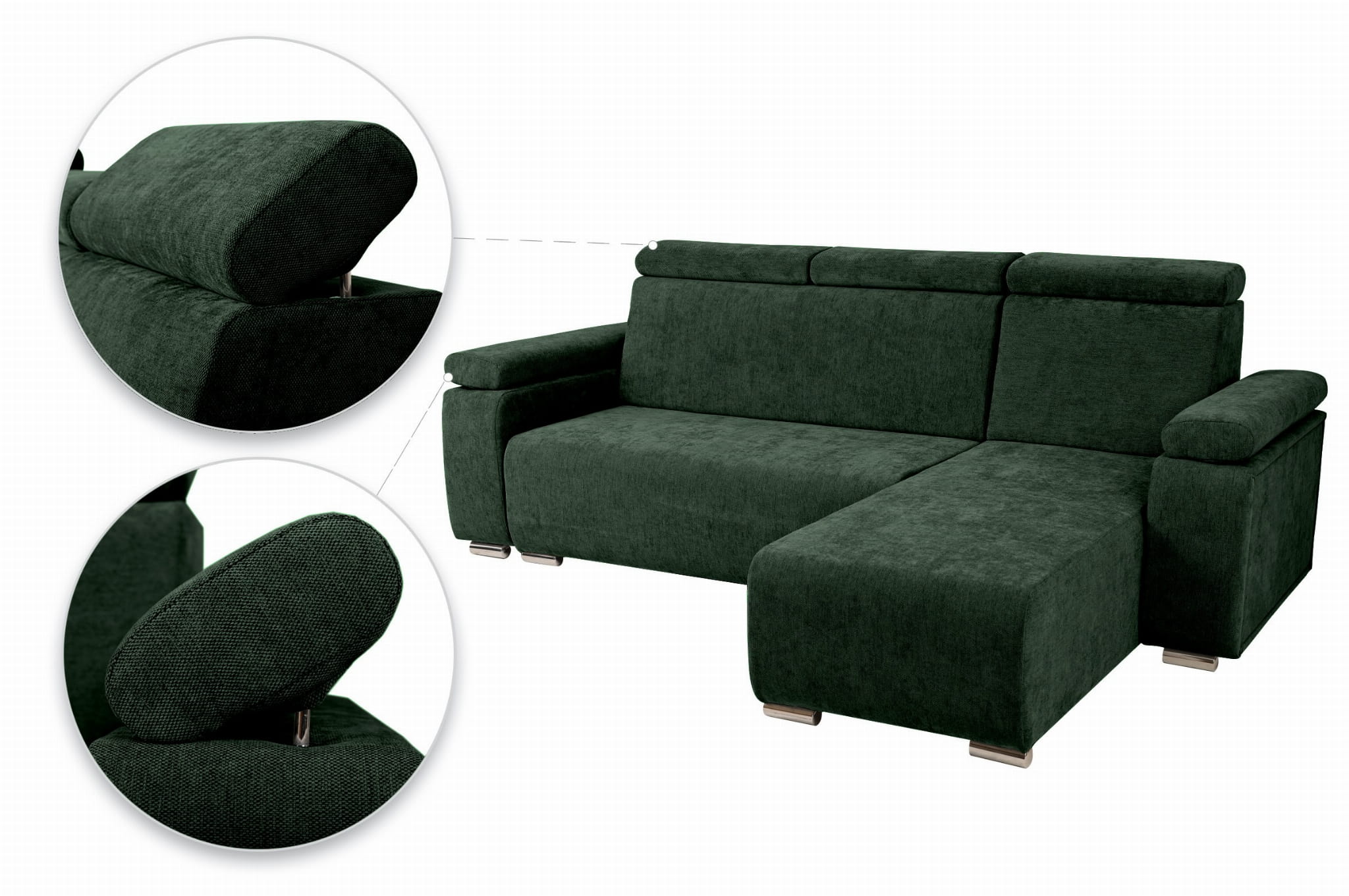 Narożnik prawy z regulowanymi zagłówkami i podłokietnikami MILAN w kolorze ciemnozielonym