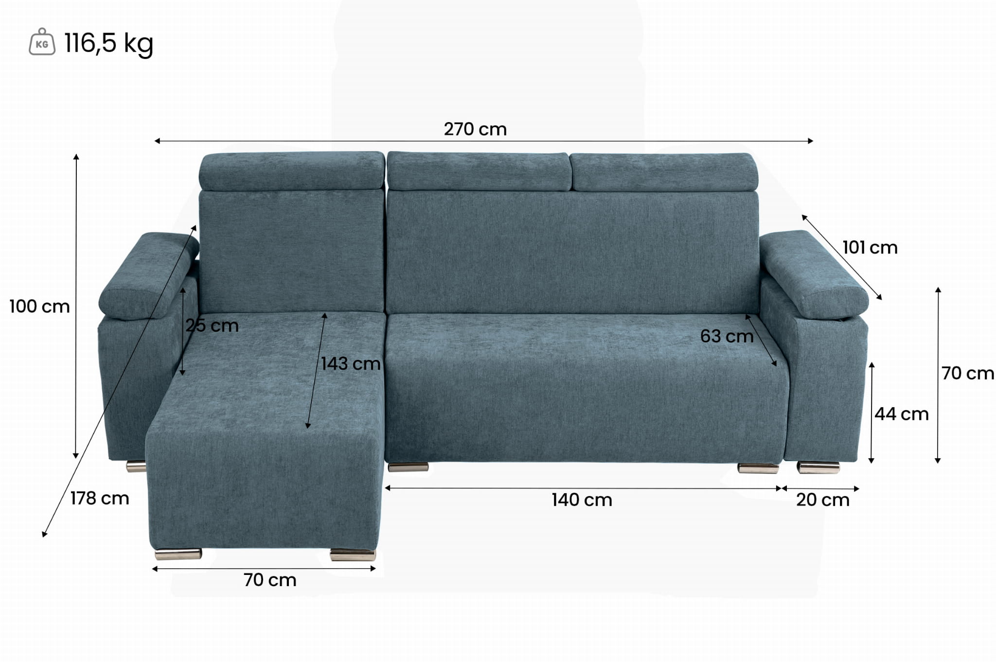 - szerokość całkowita: 270 cm