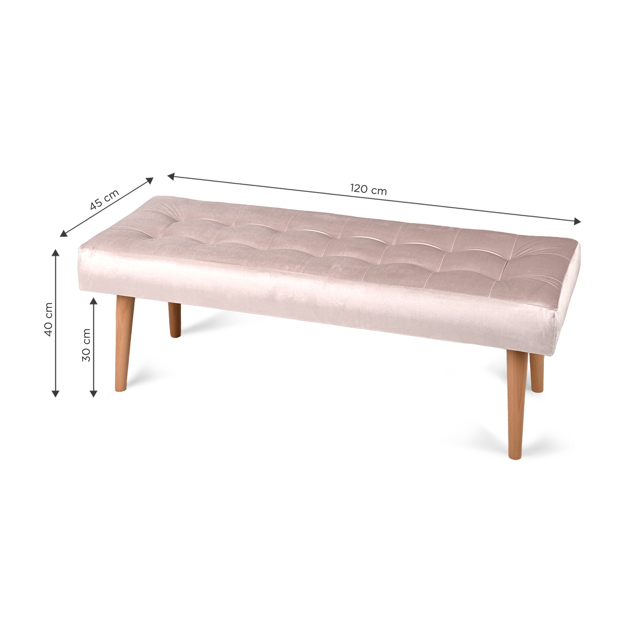 Nowoczesna ławka 45x120 cm w kolorze jasnoróżowym