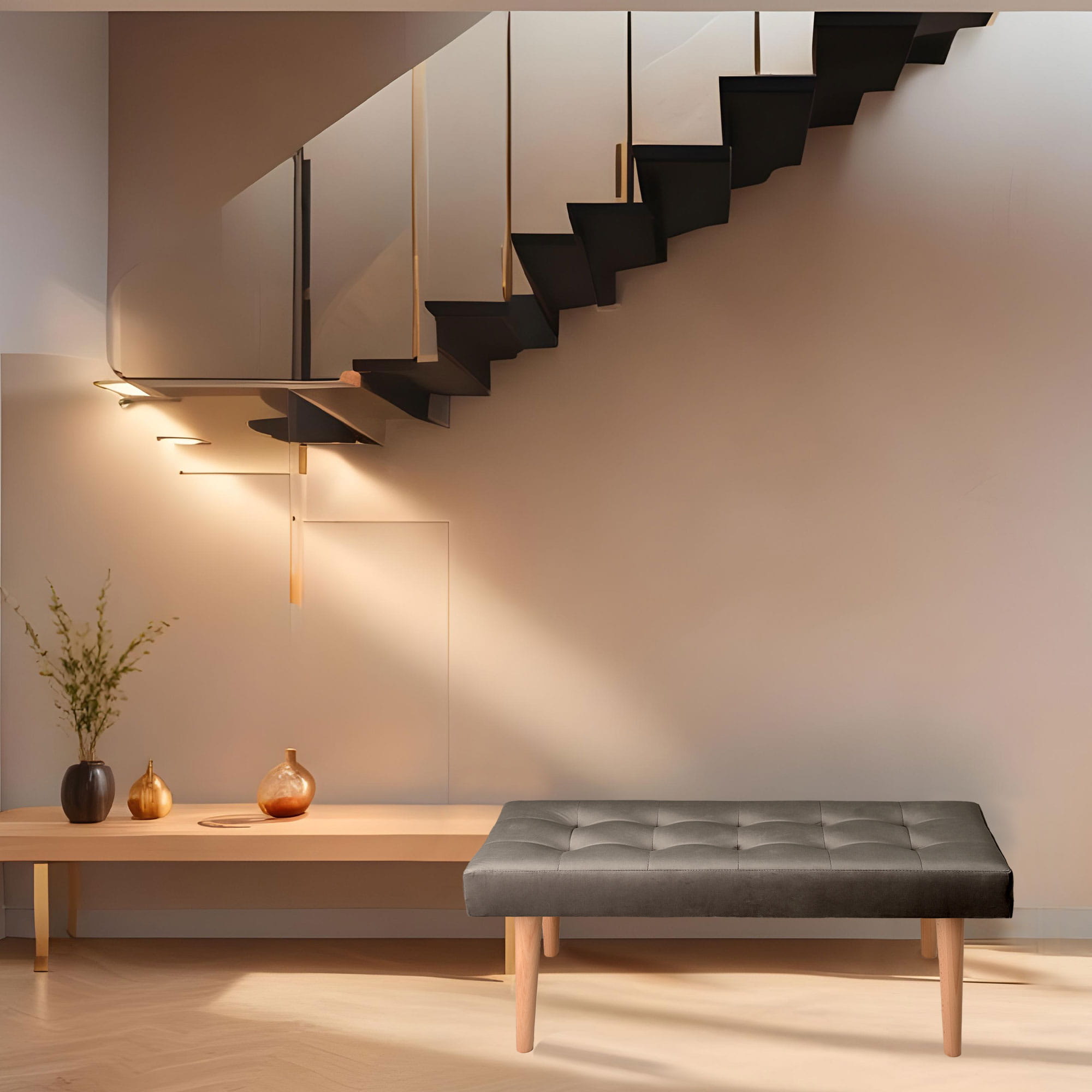 - Elegancki design: Minimalistyczna forma ławki świetnie komponuje się zarówno z nowoczesnymi, jak i klasycznymi wnętrzami. Delikatna forma mebla doda wnętrzu lekkości i stylu.