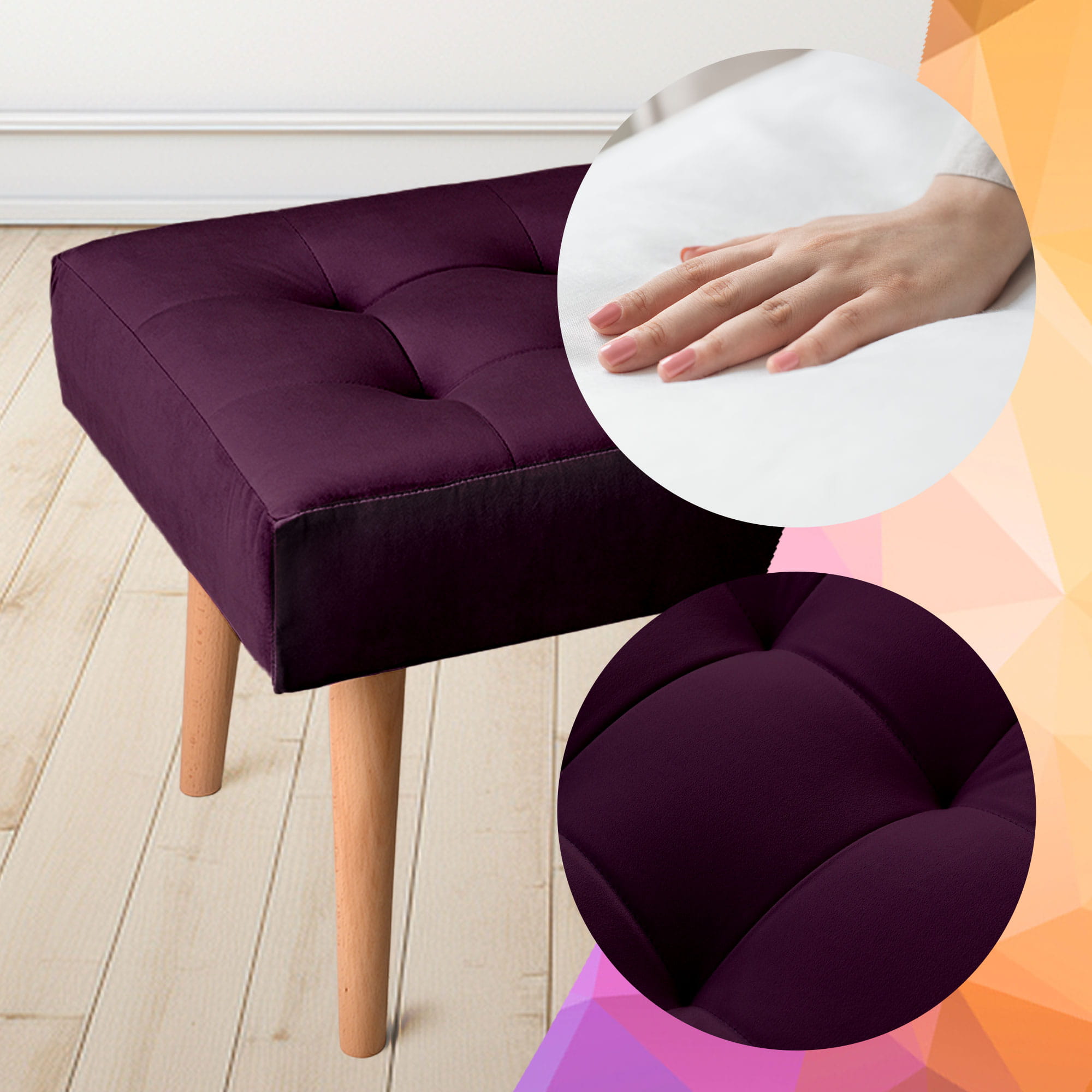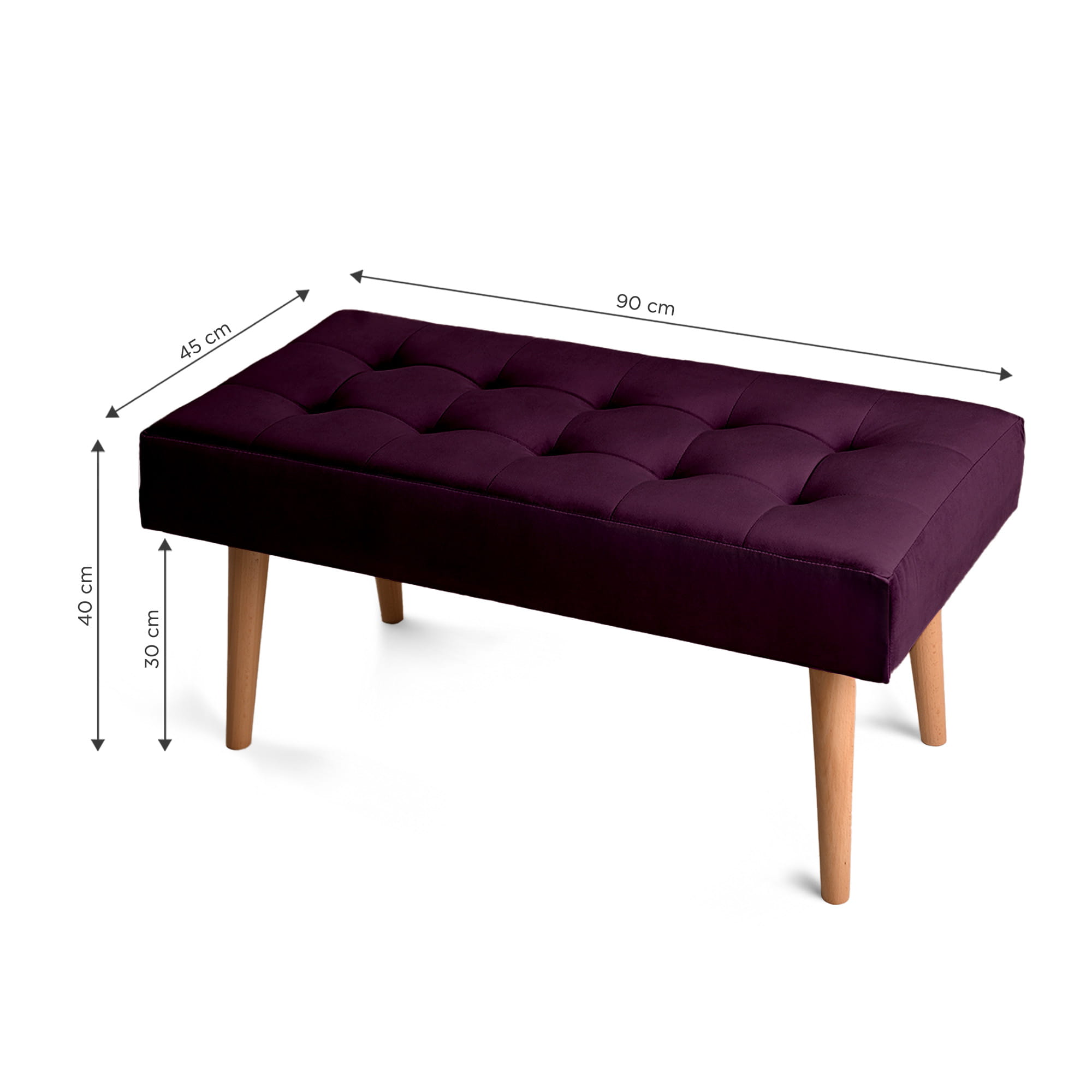Nowoczesna ławka 45x90 cm w kolorze ciemnofioletowym