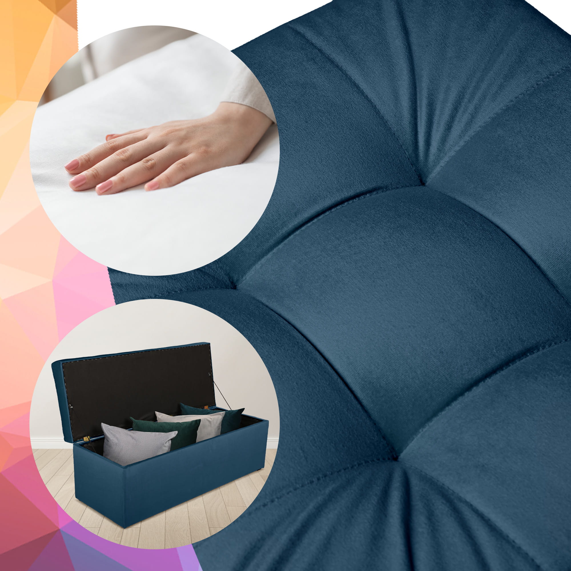 Nowoczesna otwierana pufa 45x120 cm w kolorze ciemnoniebieskim