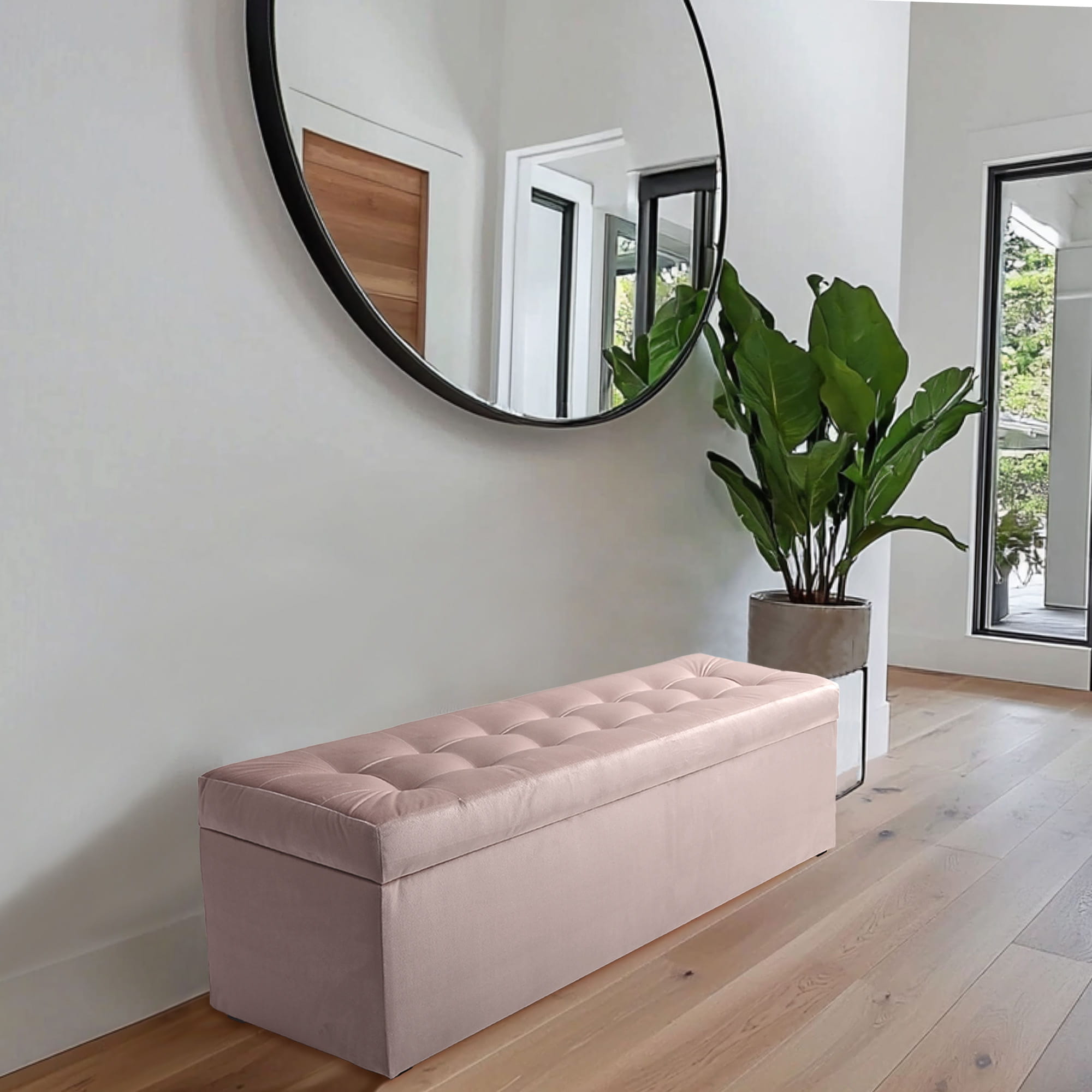 Nowoczesna otwierana pufa 45x120 cm w kolorze jasnoróżowym