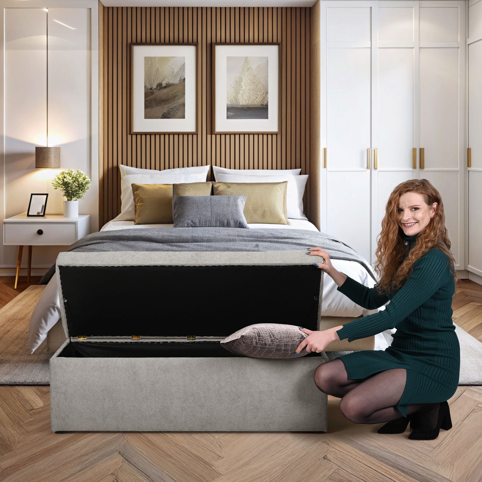 Nowoczesna otwierana pufa to połączenie elegancji i komfortu.