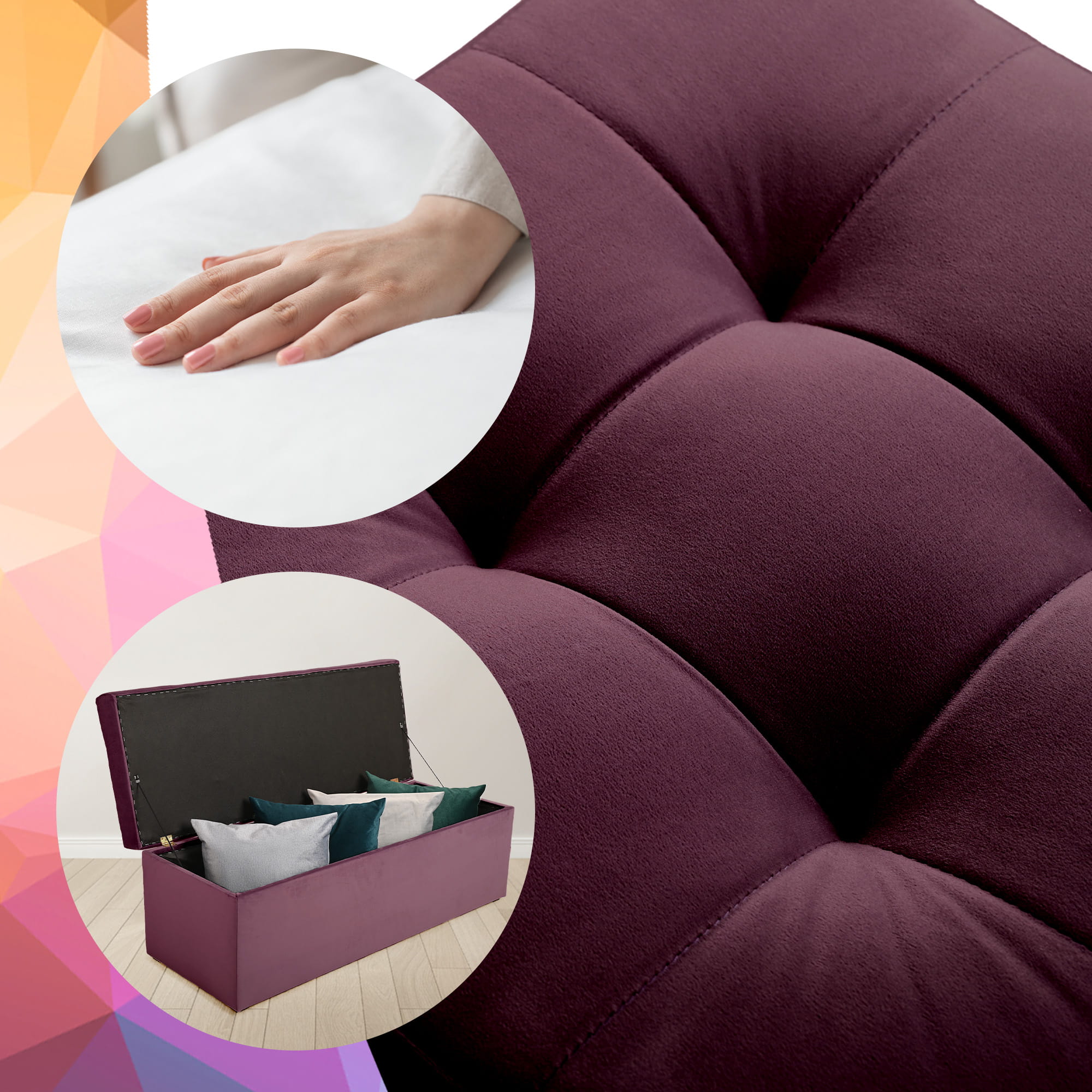 Tapicerowana pufa ze schowkiem 45x120 cm