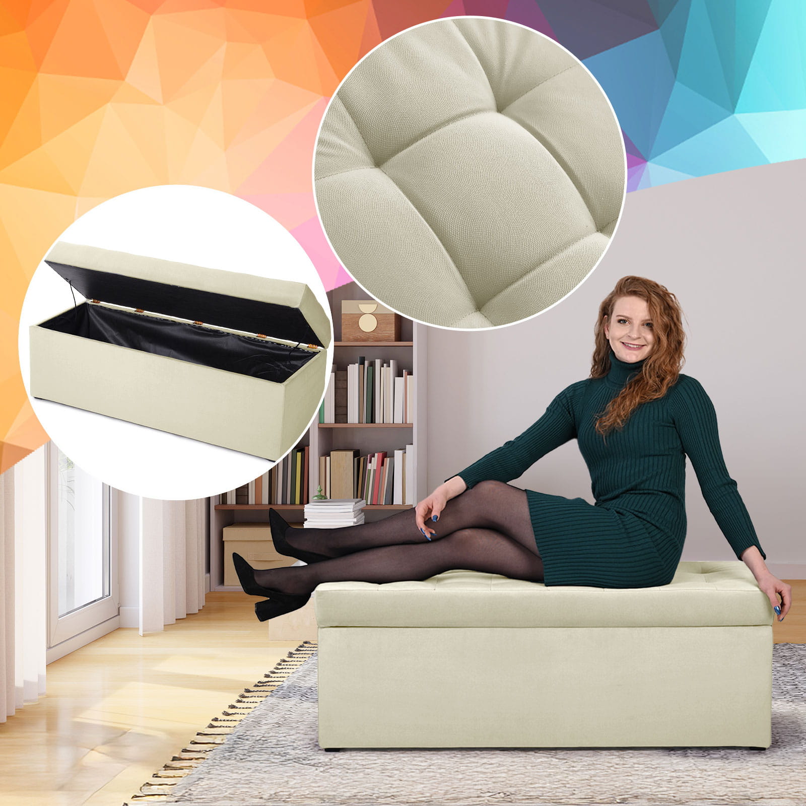 Nowoczesna otwierana pufa 45x120 w kolorze jasnego beżu