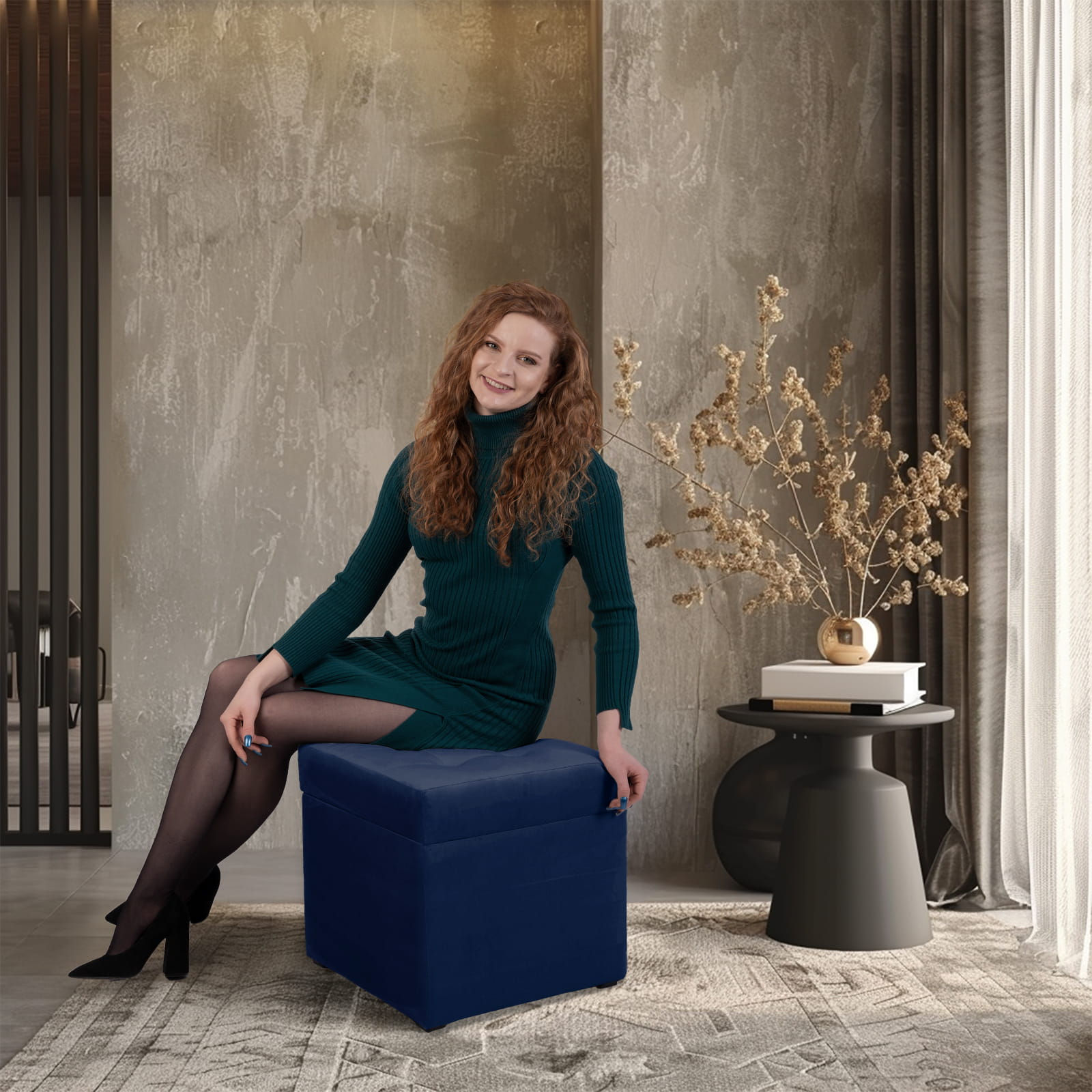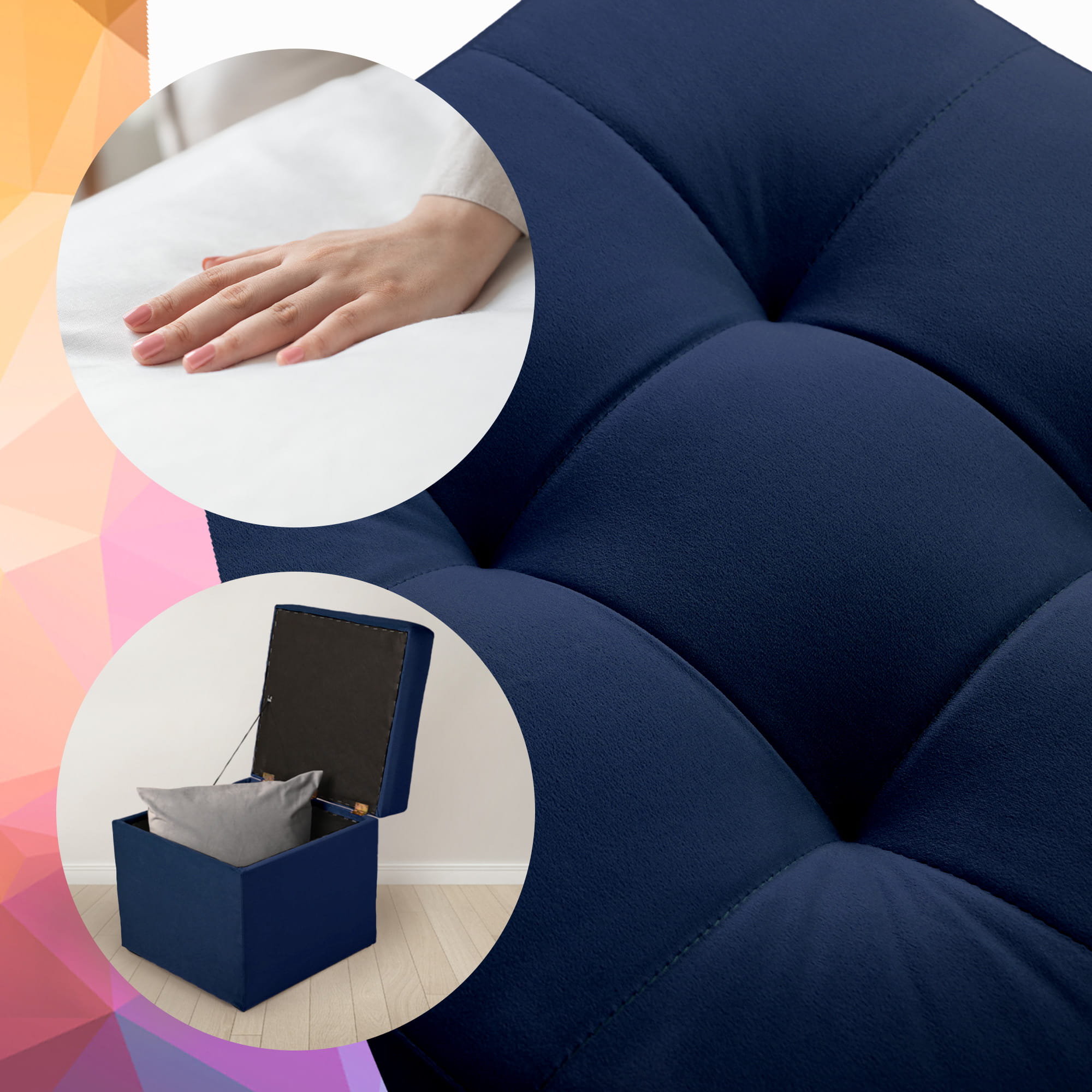 Nowoczesna pufa ze schowkiem 45x45 cm - ciemnoniebieska