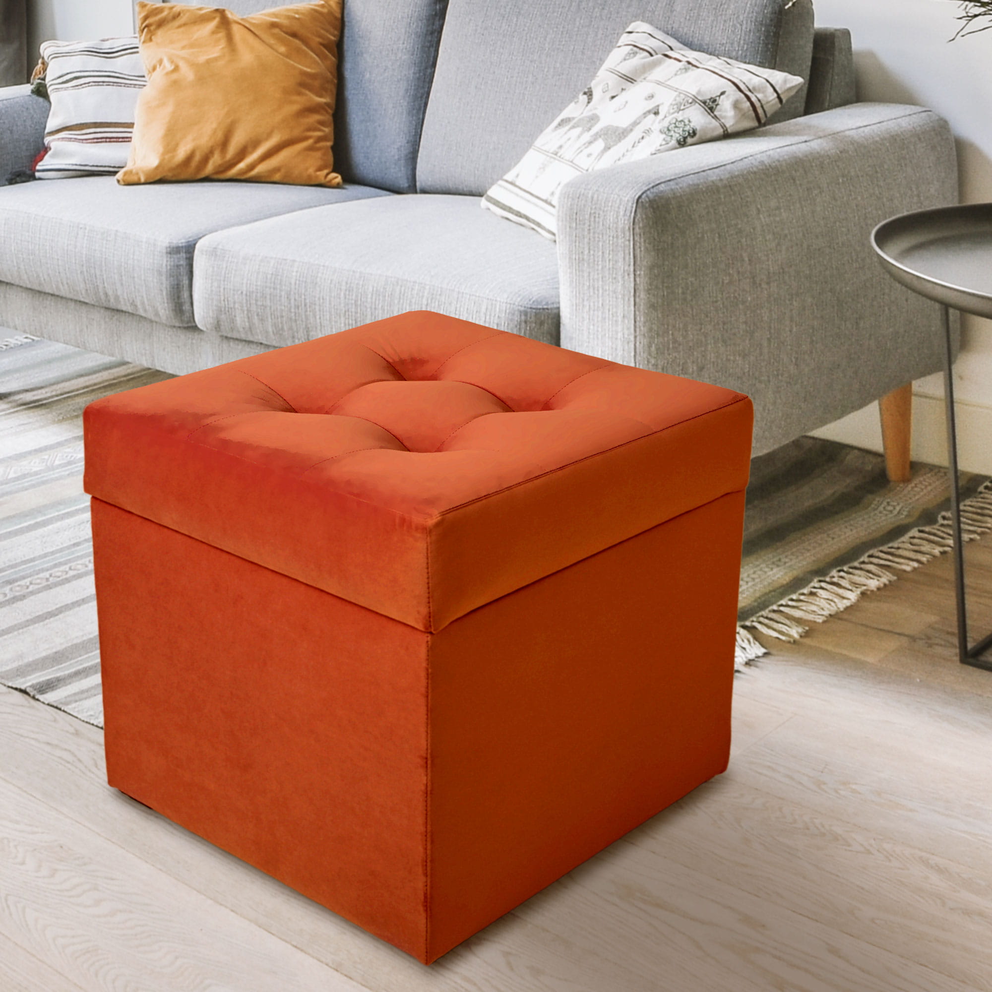 Nowoczesna pufa ze schowkiem 45x45 cm - pomarańczowa