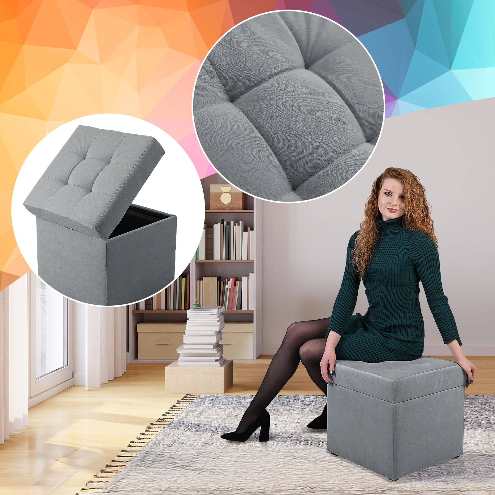 Tapicerowana pufa ze schowkiem 45x45 cm
