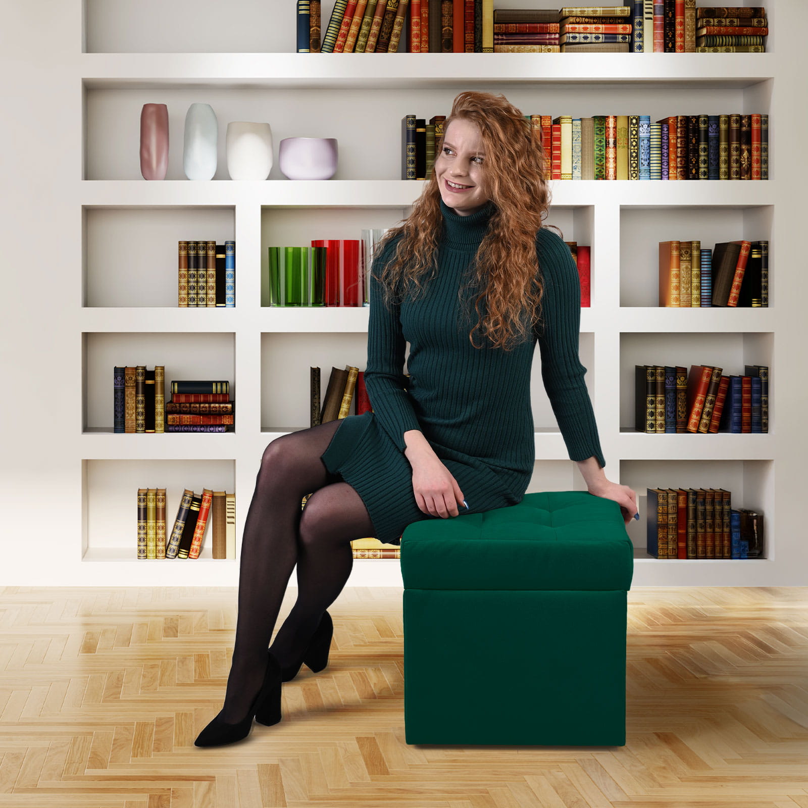 Nowoczesna otwierana pufa 45x45 w kolorze ciemnozielonym