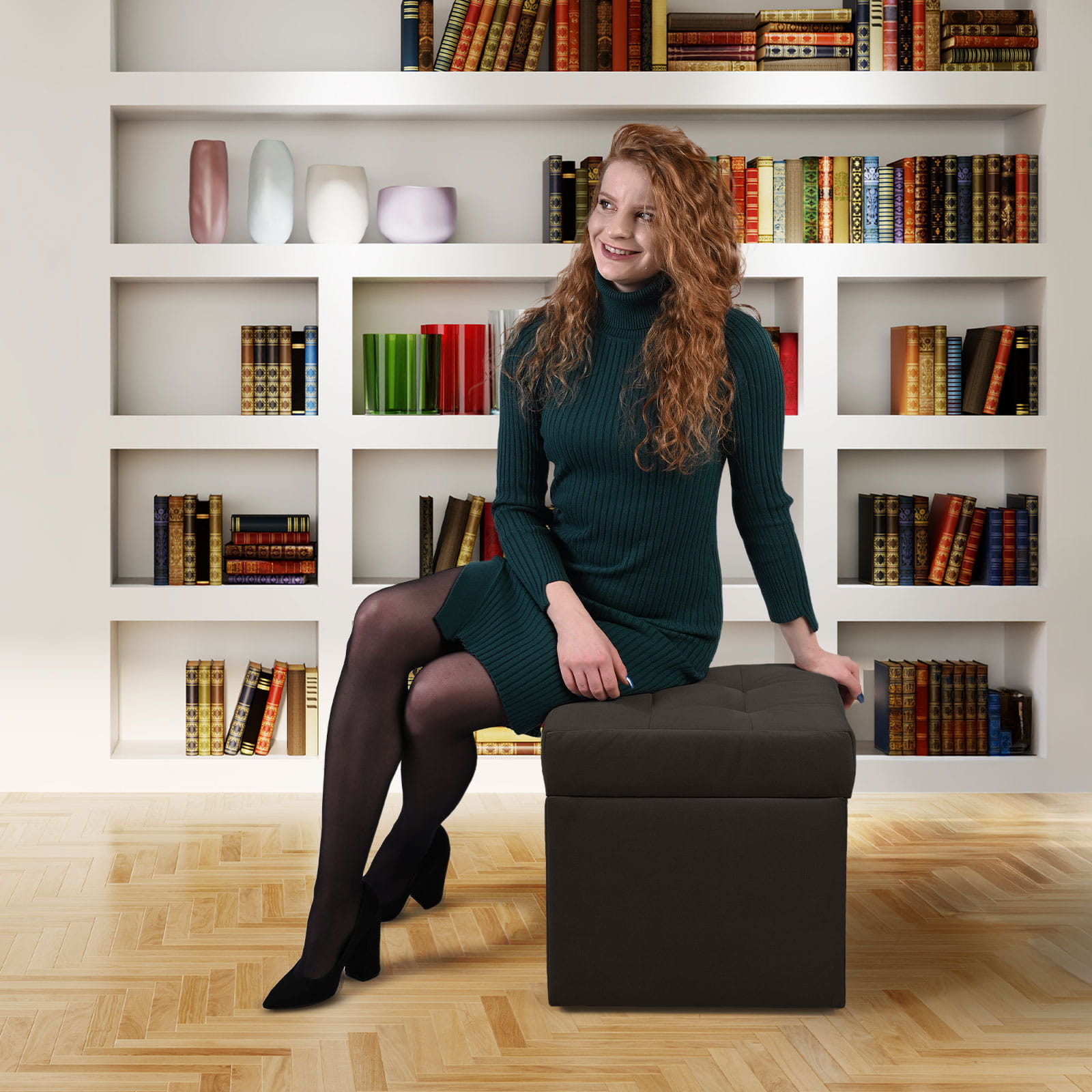 Nowoczesna otwierana pufa 45x45 w kolorze czekoladowego brązu