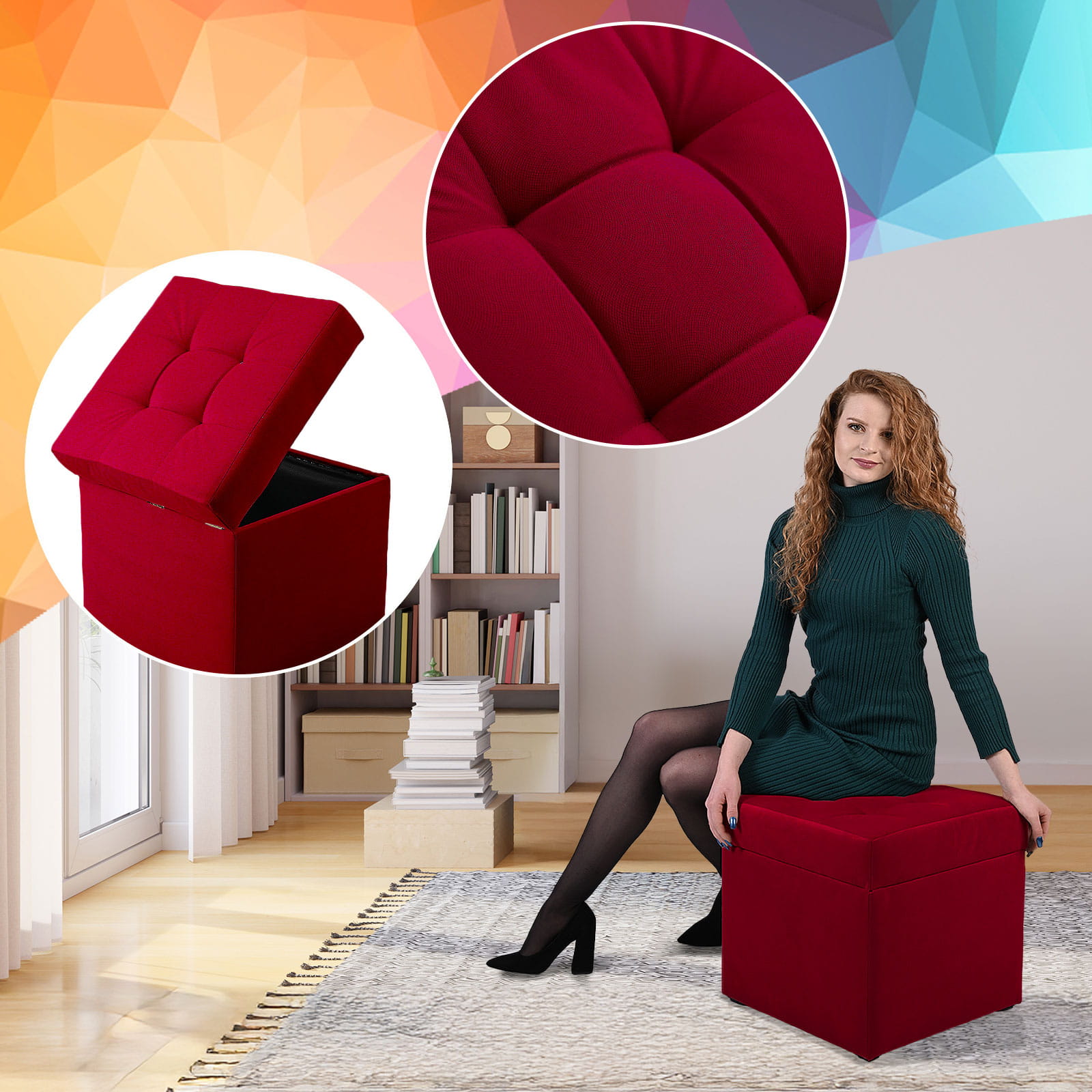 Nowoczesna otwierana pufa 45x45 w kolorze czerwonym